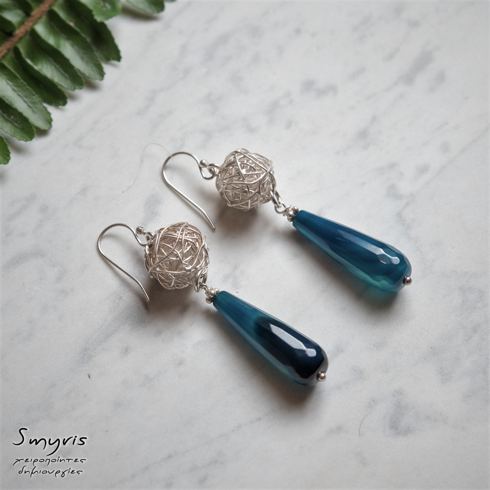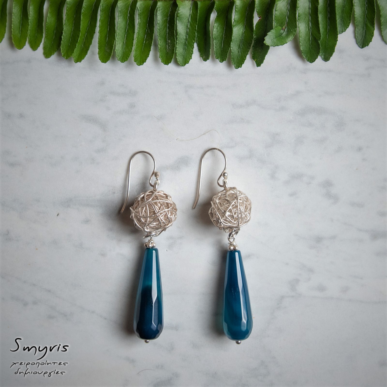 Ασημένια σκουλαρίκια 925 με αχάτη