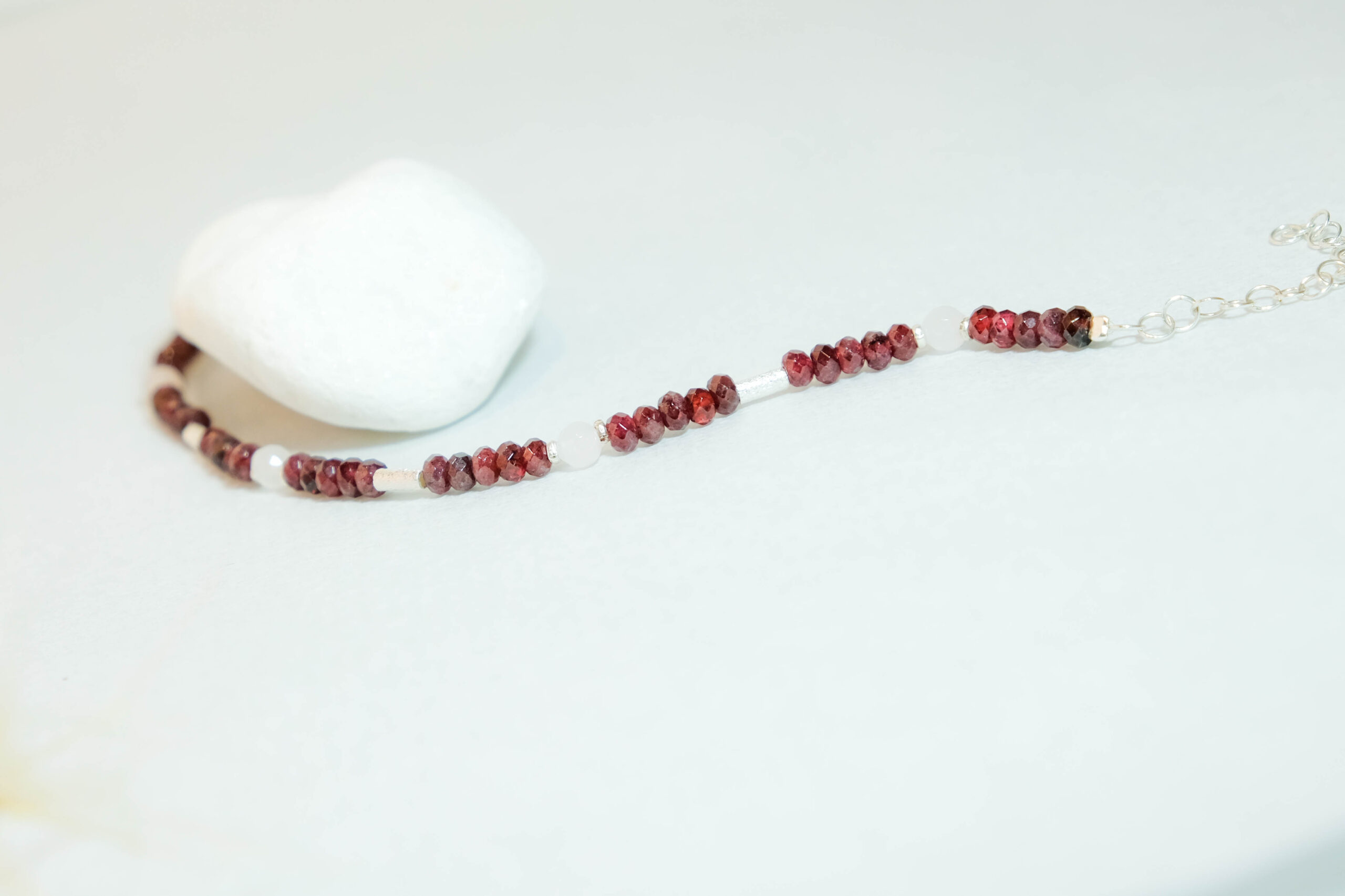 Βραχιόλι με γρανάτη, ροζ χαλαζία και ασημένια 925 στοιχεία. Ένα βραχιόλι με δύο υπέροχους λίθους που θα σε συντροφεύει καθημερινά!