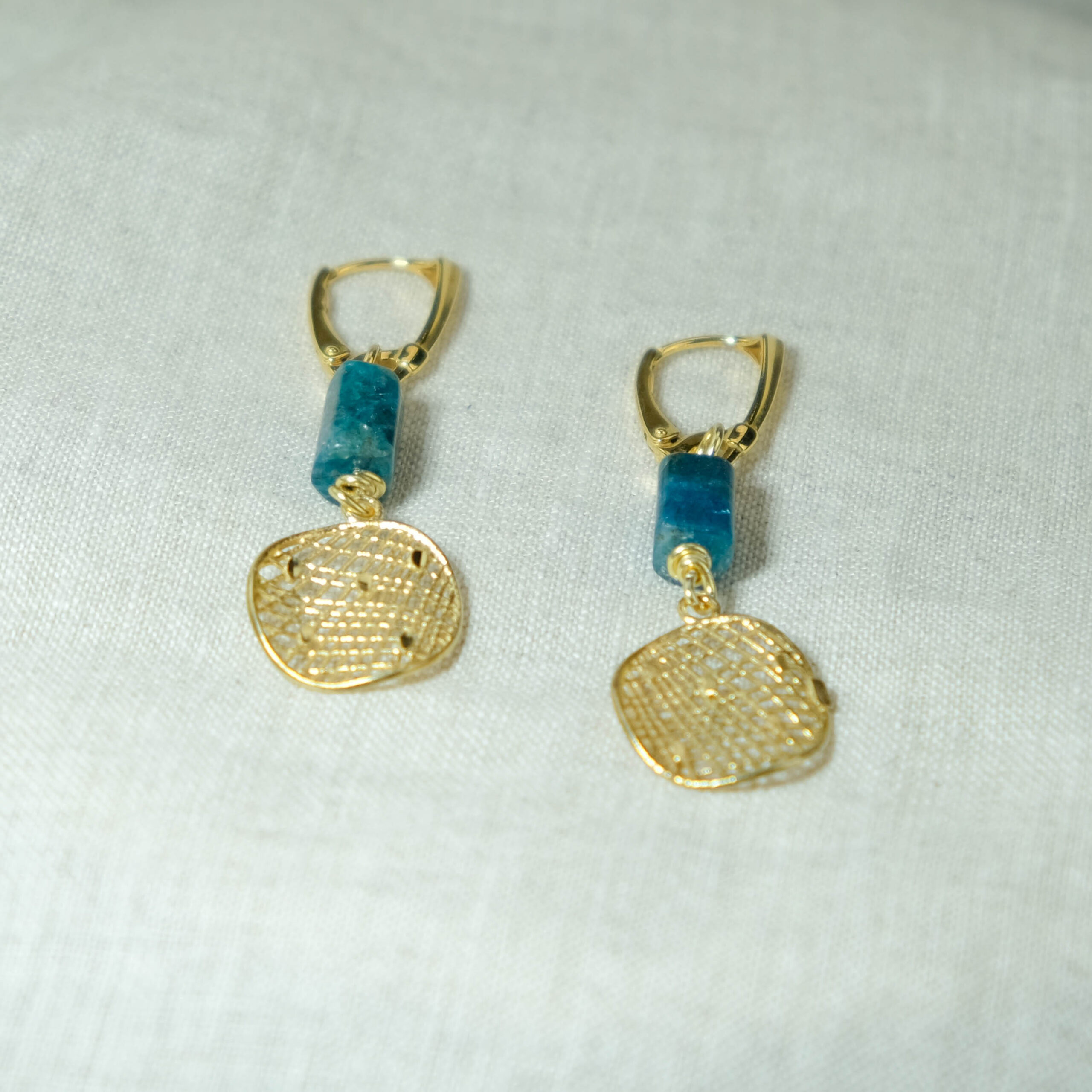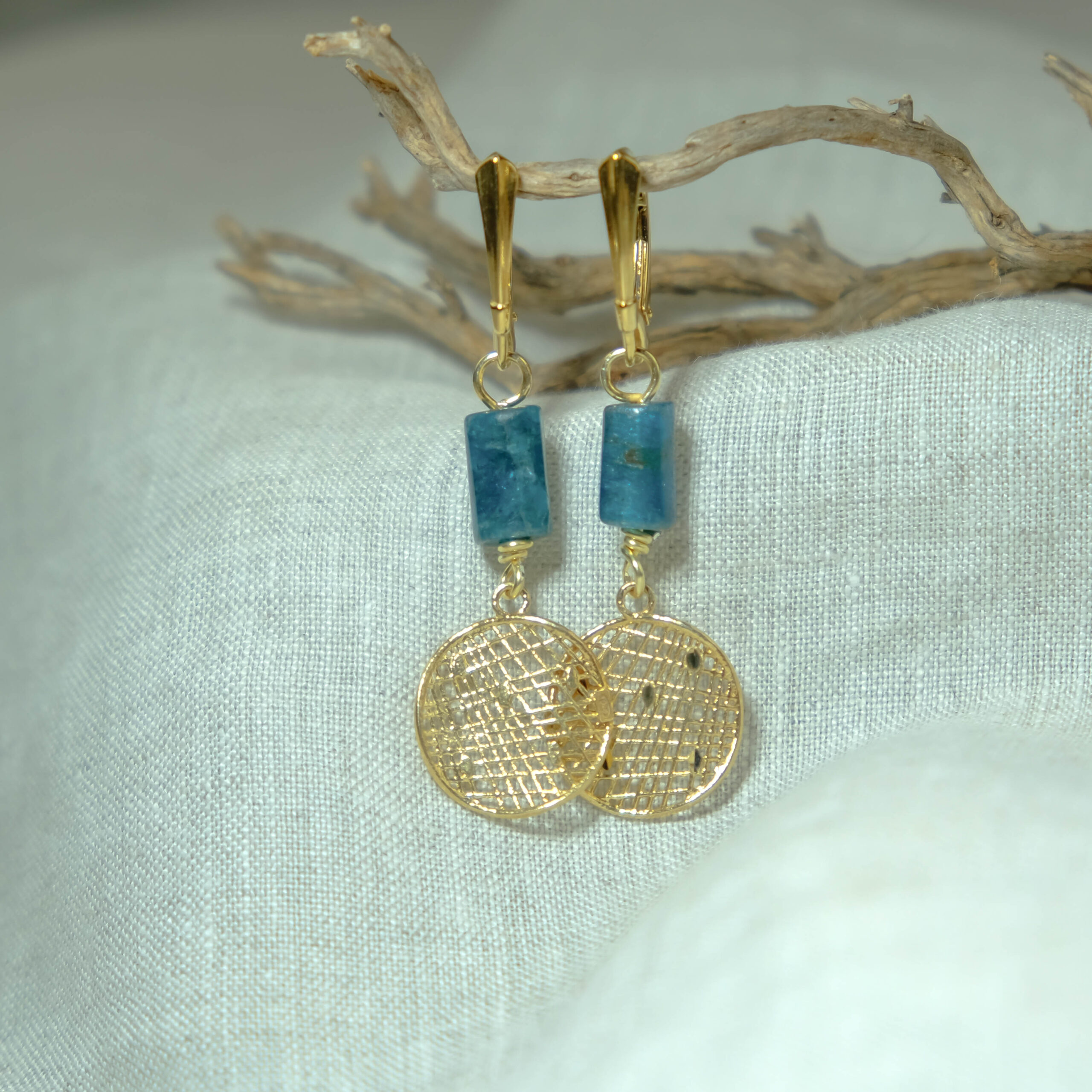 Ασημένια επιχρυσωμένα σκουλαρίκια με Απατίτη. Τα σκουλαρίκια με μπλε απατίτη είναι η τέλεια επιλογή για κάθε στιγμή!