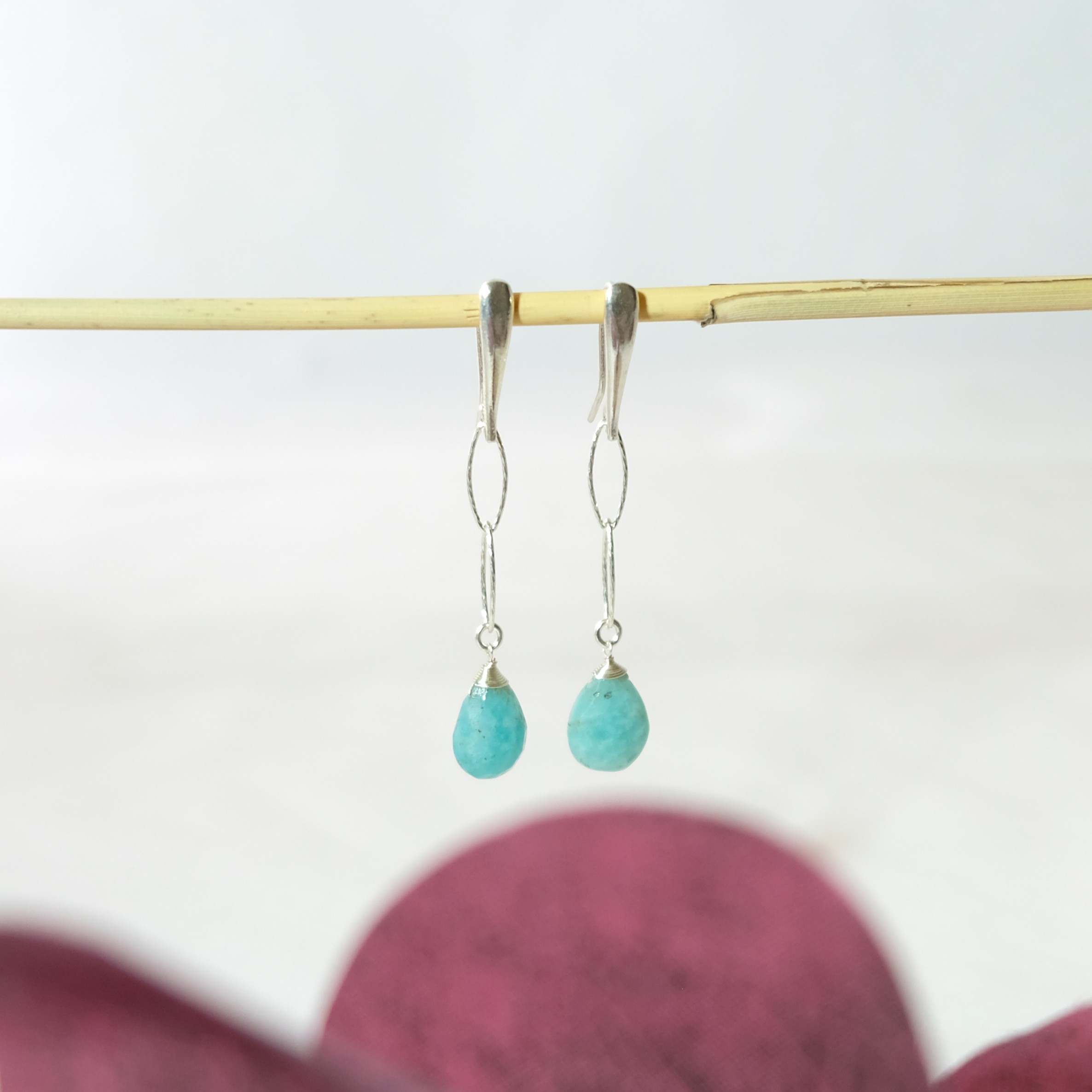 Ασημένια σκουλαρίκια με Αμαζονίτη σε σχήμα δάκρυ. Για να ενισχύεις το θάρρος και την αυτοπεποίθηση σου φορώντας τα!!