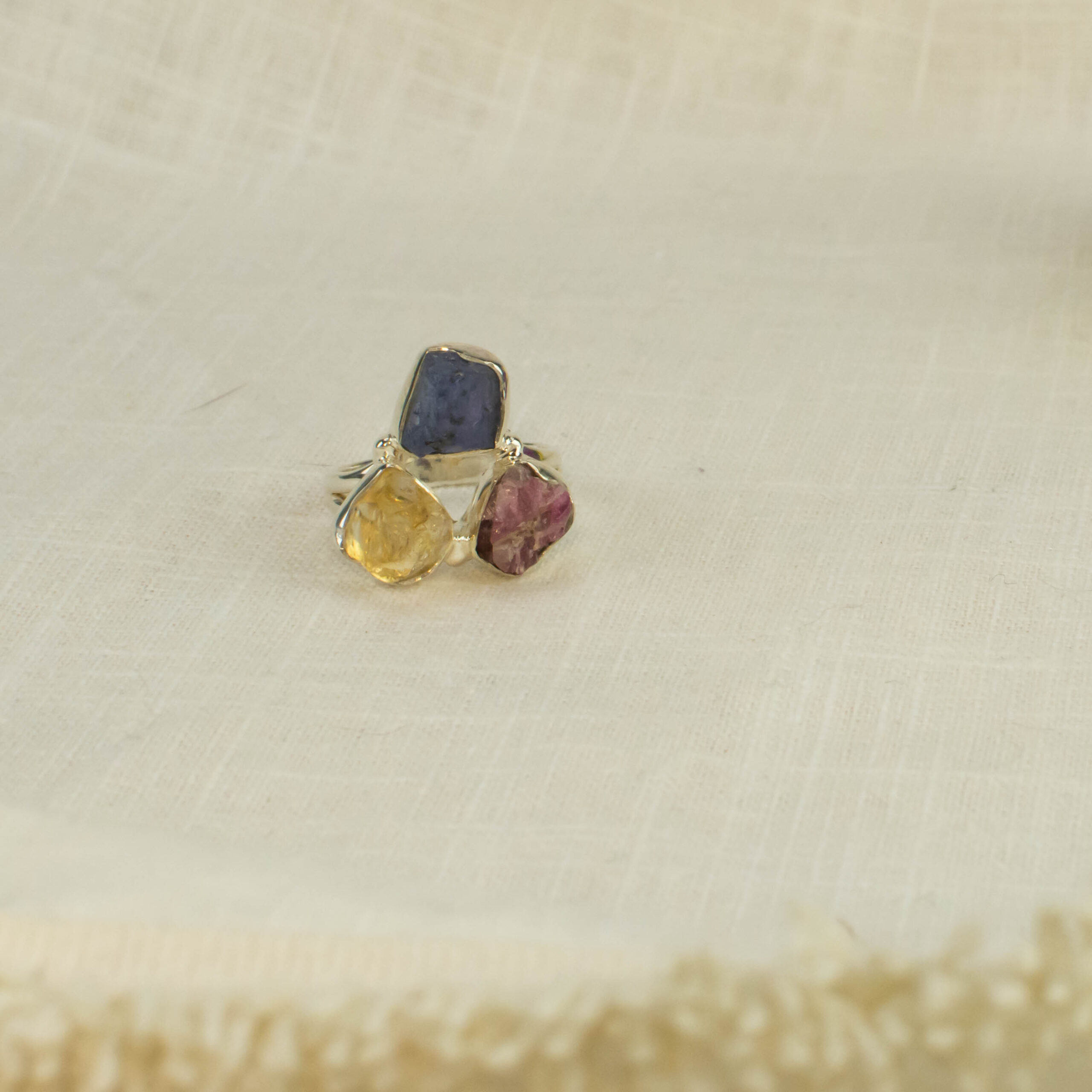 Ασημένιο δαχτυλίδι με ακατέργαστους πολύτιμους λίθους. Ένα υπέροχο και μοναδικό δαχτυλίδι που δεν πρέπει να λείπει από τη συλλογή σου!