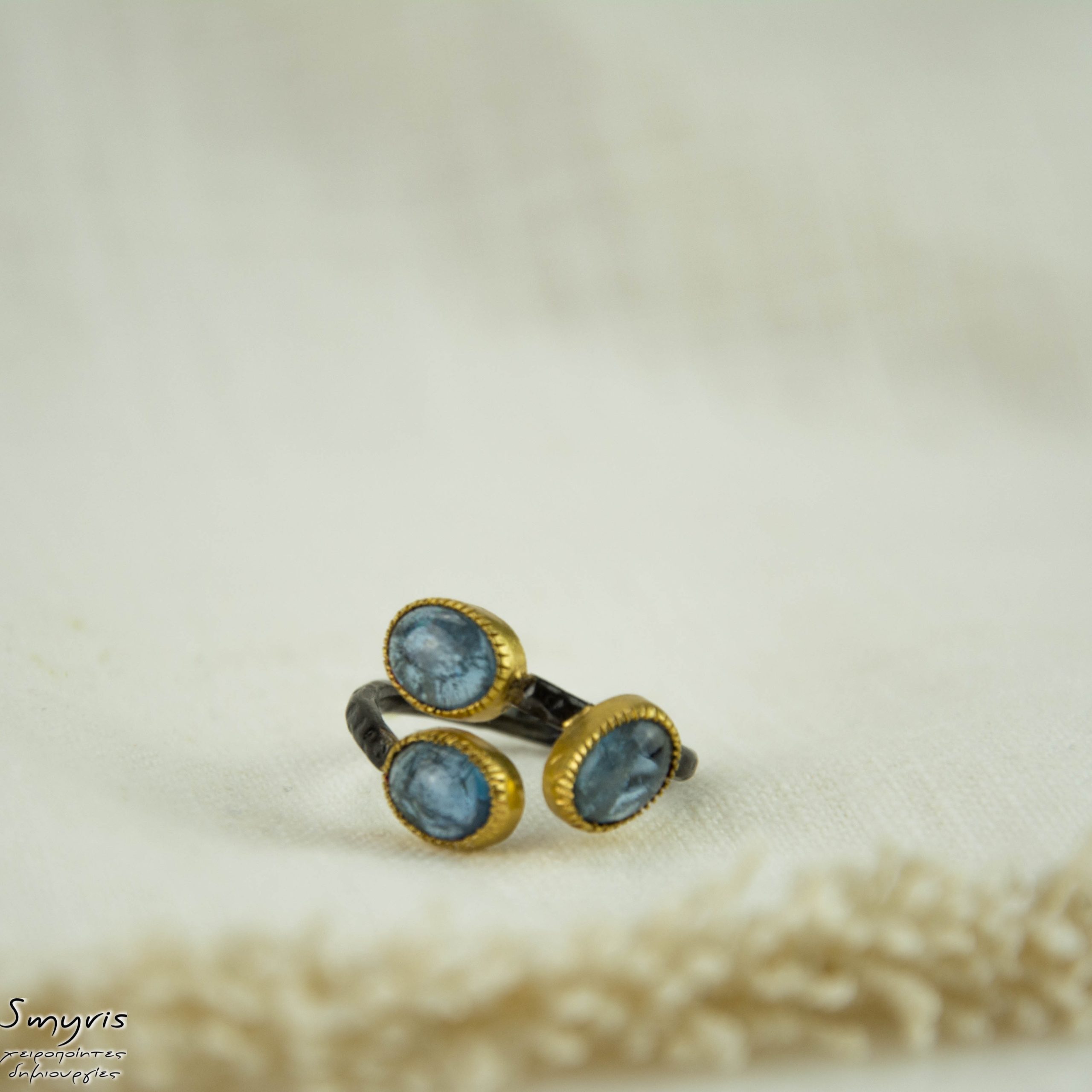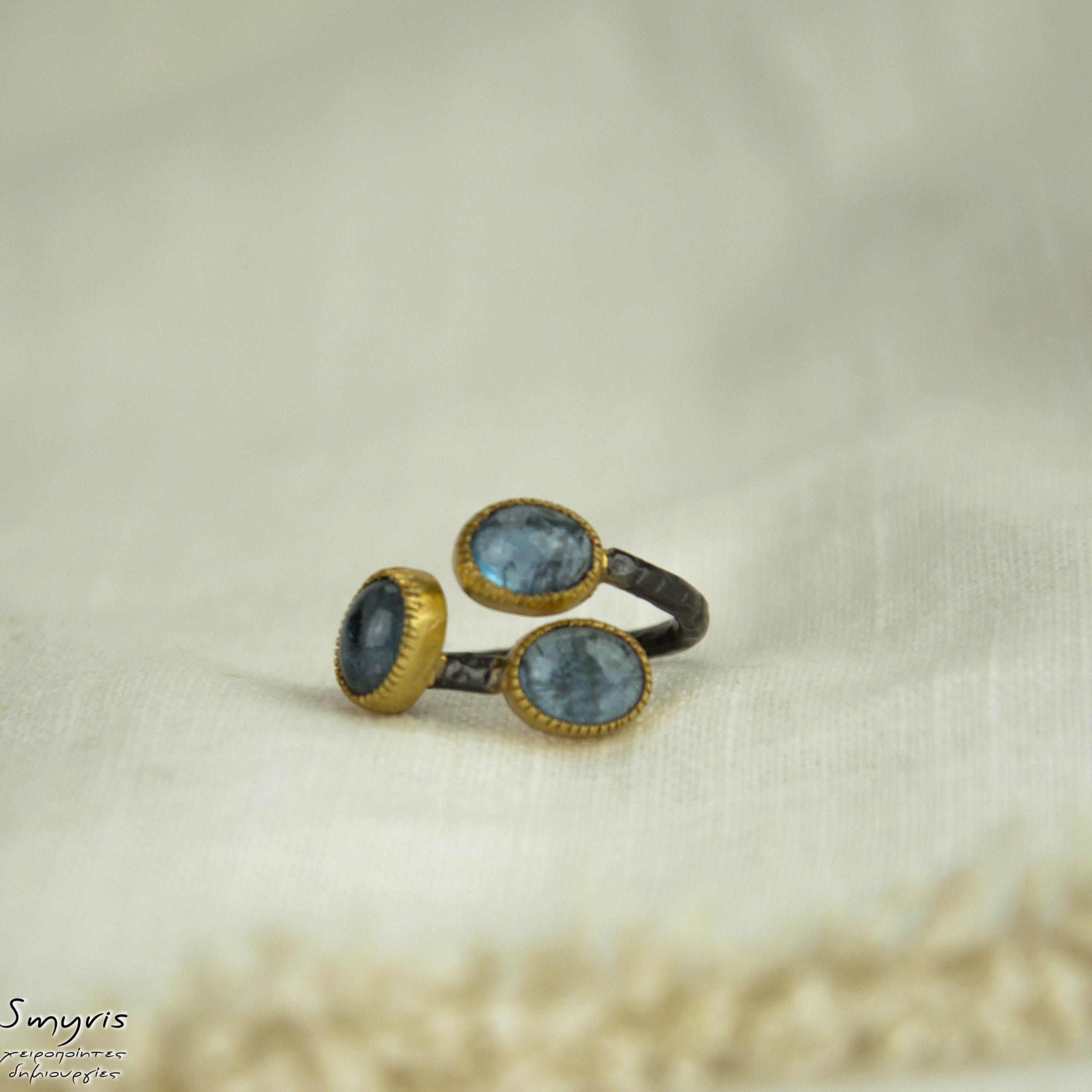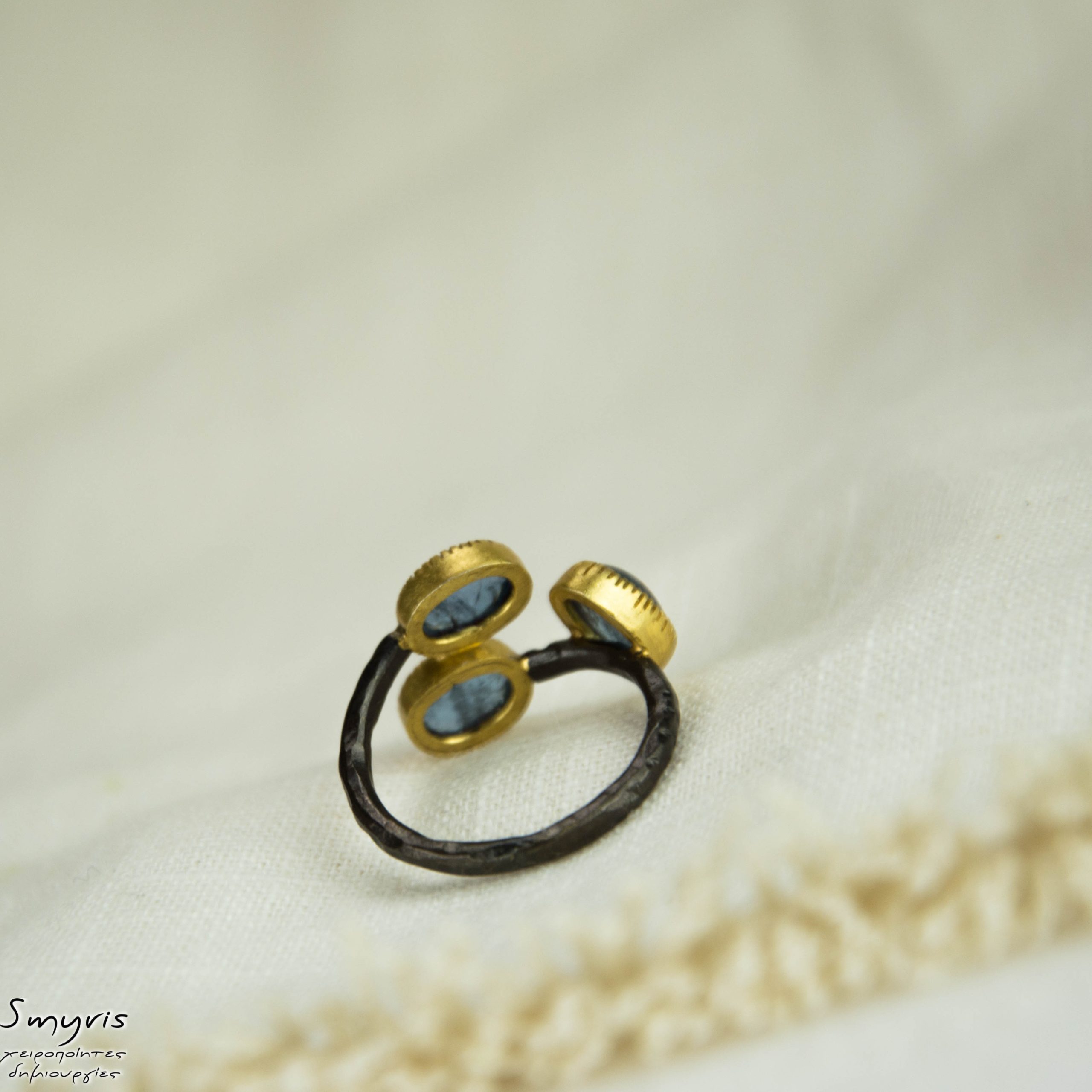 ◾ Ασημένιο δαχτλίδι με ιολίτη σε ασημένιο 925 επιχρυσωμένο καστόνι. Διατίθεται σε 55 Νο.