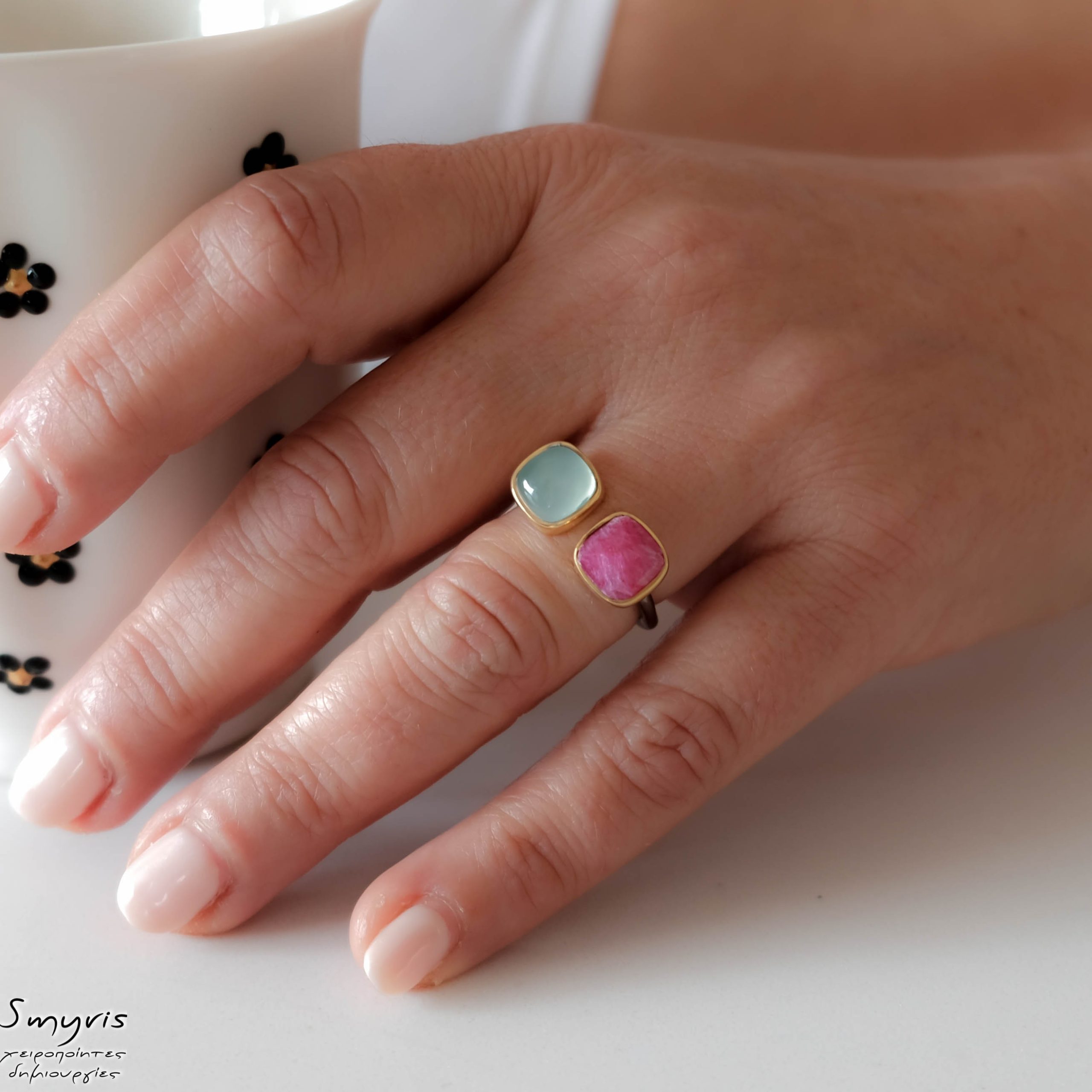 Πολύ όμορφο ασημένιο δαχτυλίδι με ρουμπινίτη και χαλκηδόνιο για να νιώθεις ενέργεια και δημιουργικότητα φορώντας το.