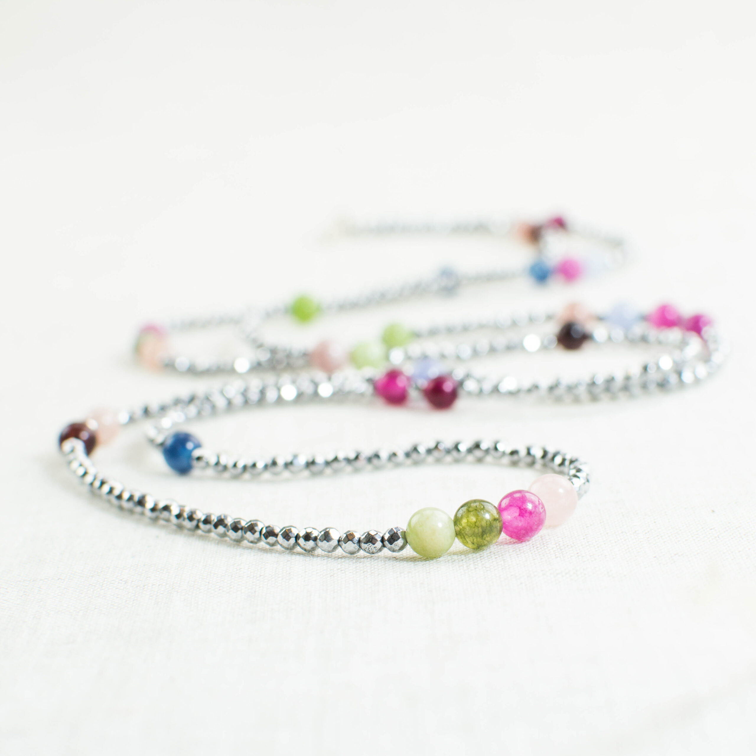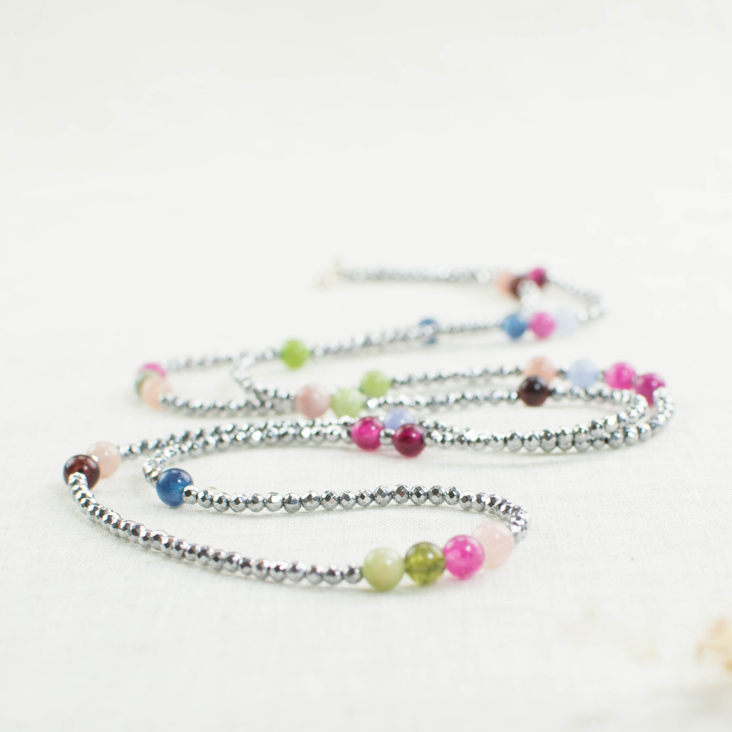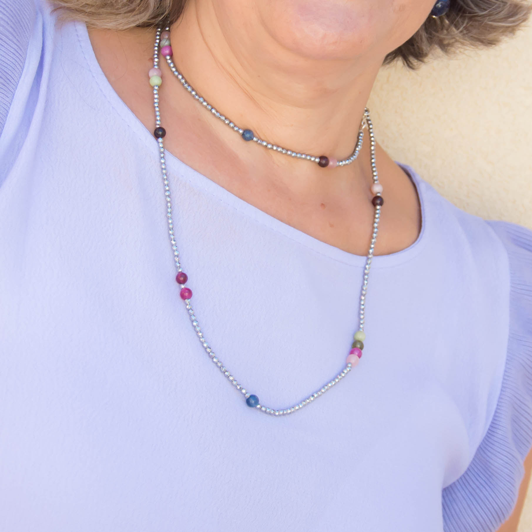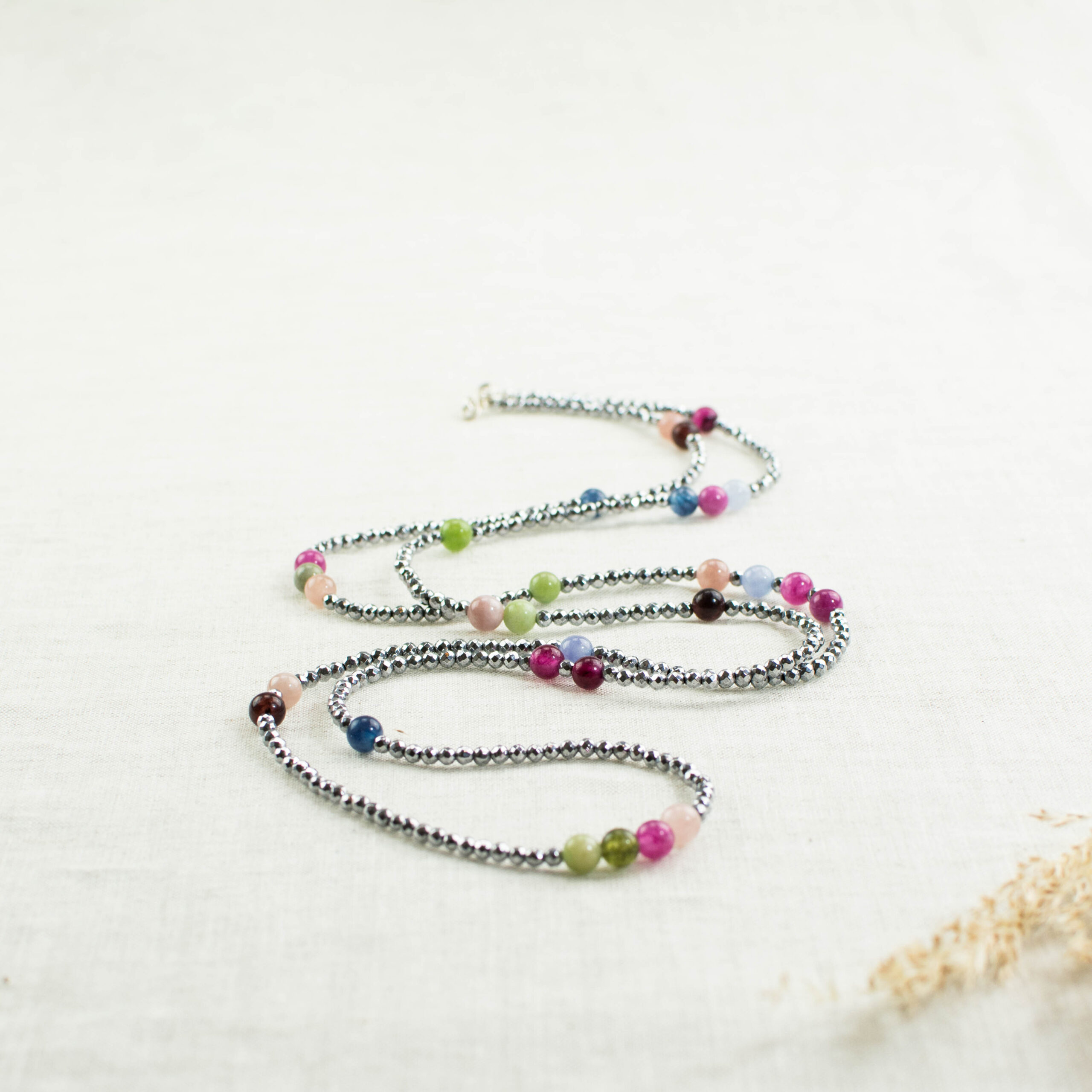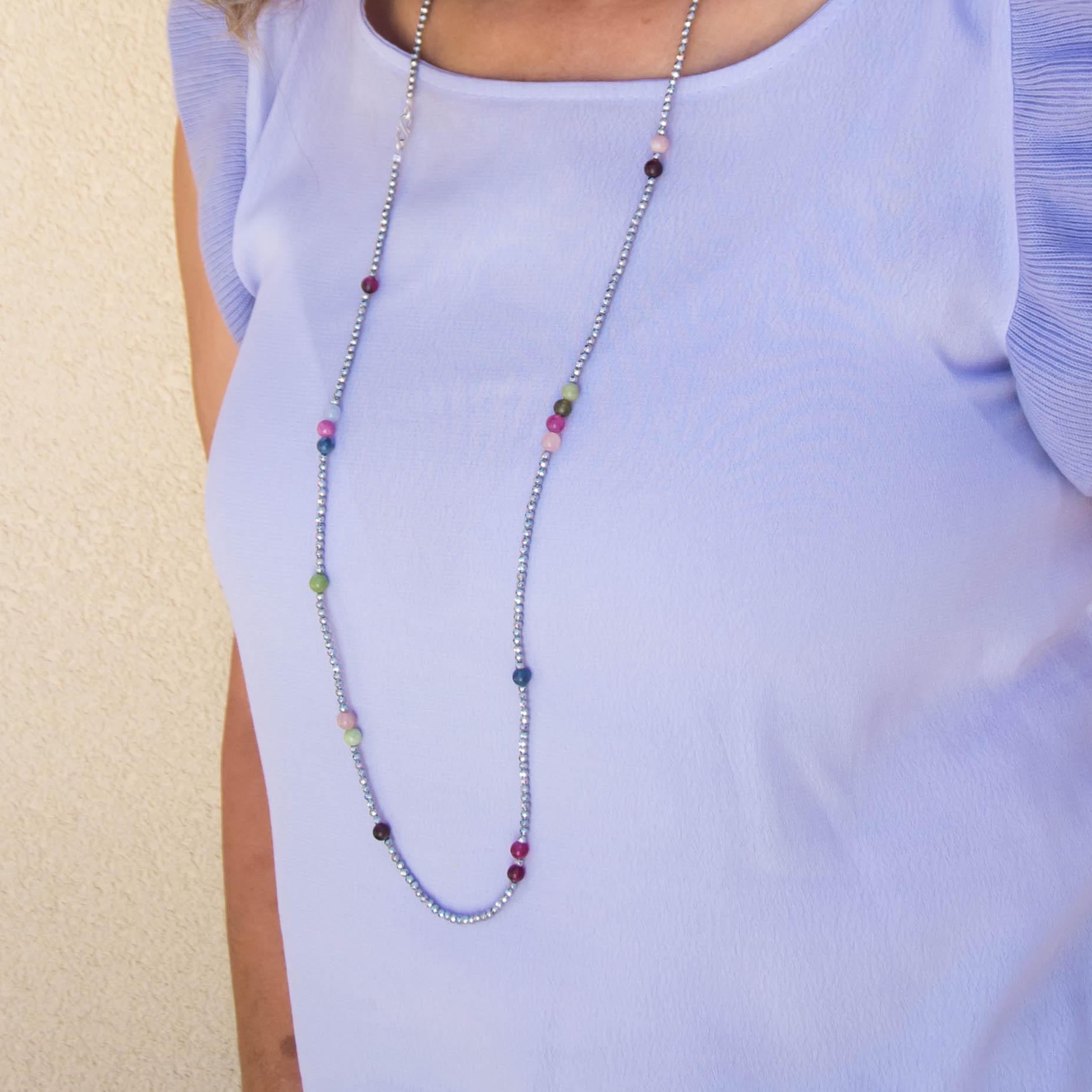 ▪️ Κολιέ μακρύ με πολύχρωμους αχάτες και αιματίτη και ασημένιο 925 κούμπωμα.
