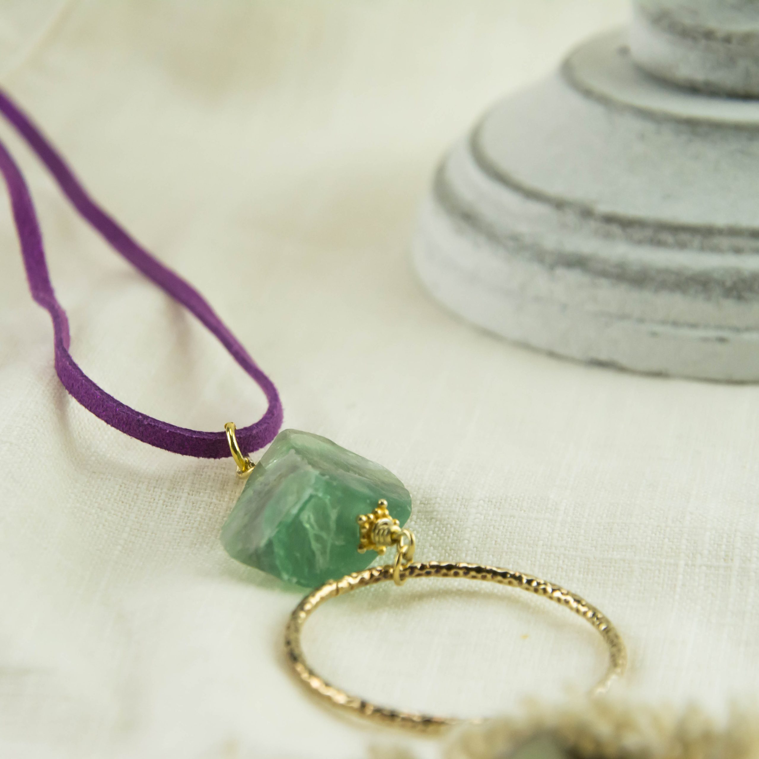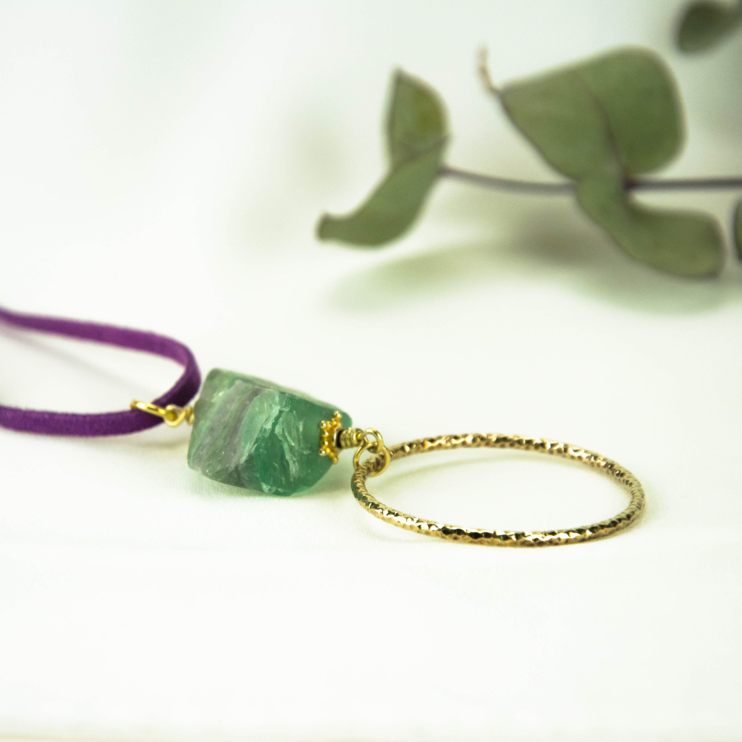 ◾ Κολιέ με ακατέργαστο φθορίτη με ασημένια 925 στοιχεία και εξαρτήματα σε σουέτ κορδόνι.