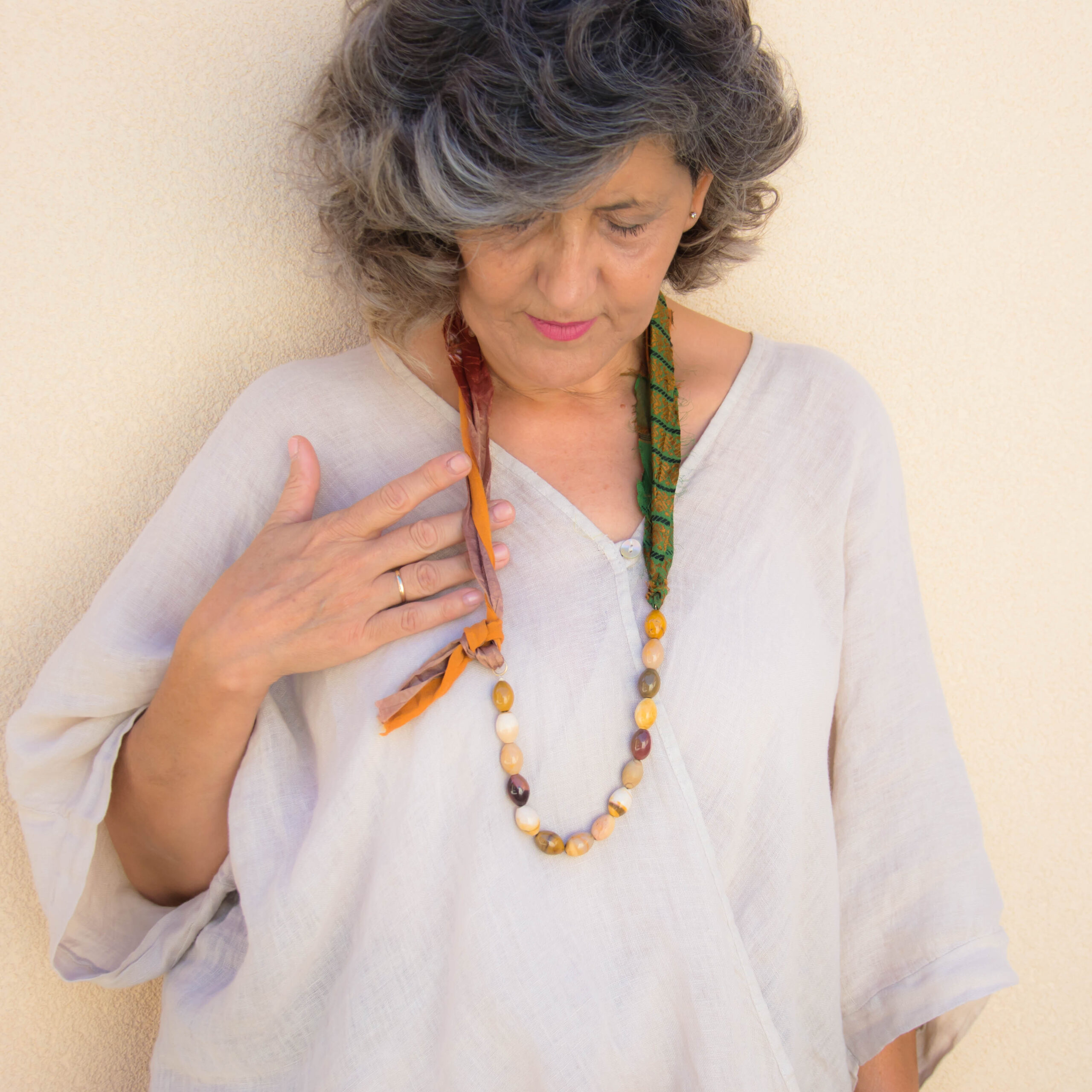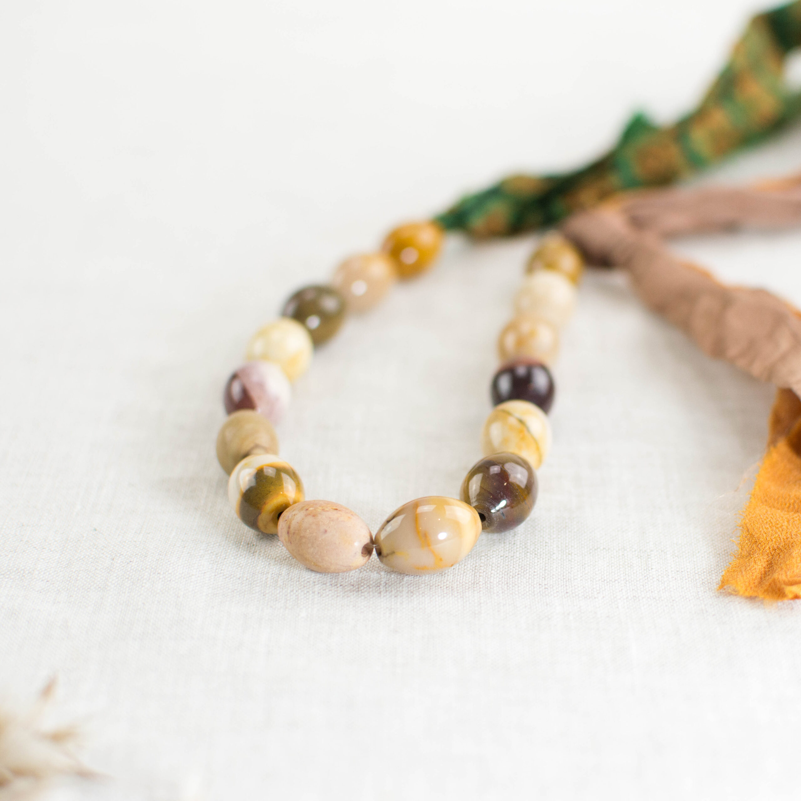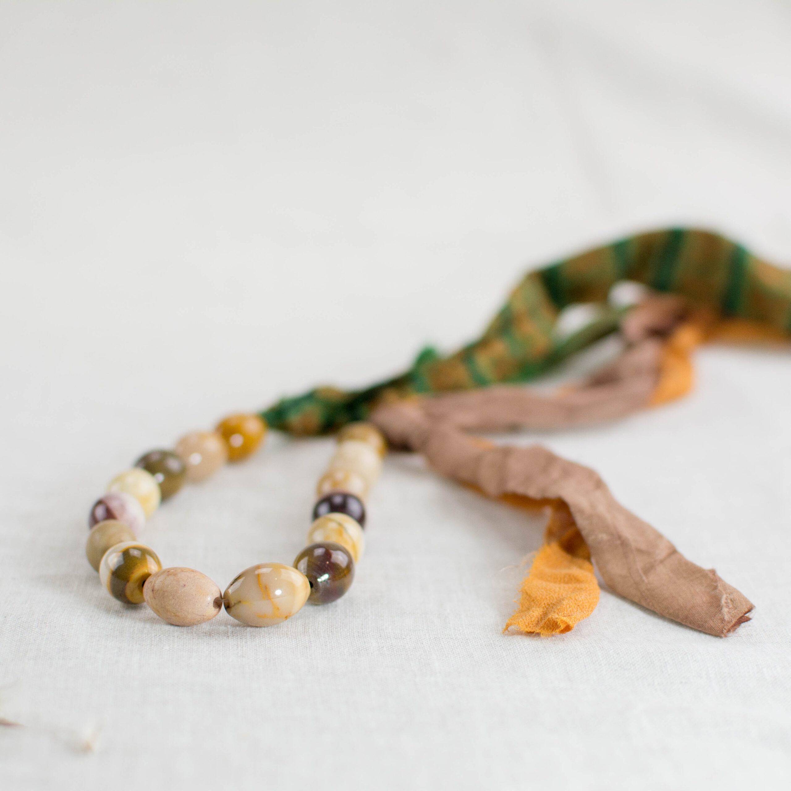 Κολιέ με αχάτες και μεταξωτές κορδέλες. Το νέο σου έθνικ κολιέ για να δώσεις άλλο χαρακτήρα στο ντύσιμο σου!
