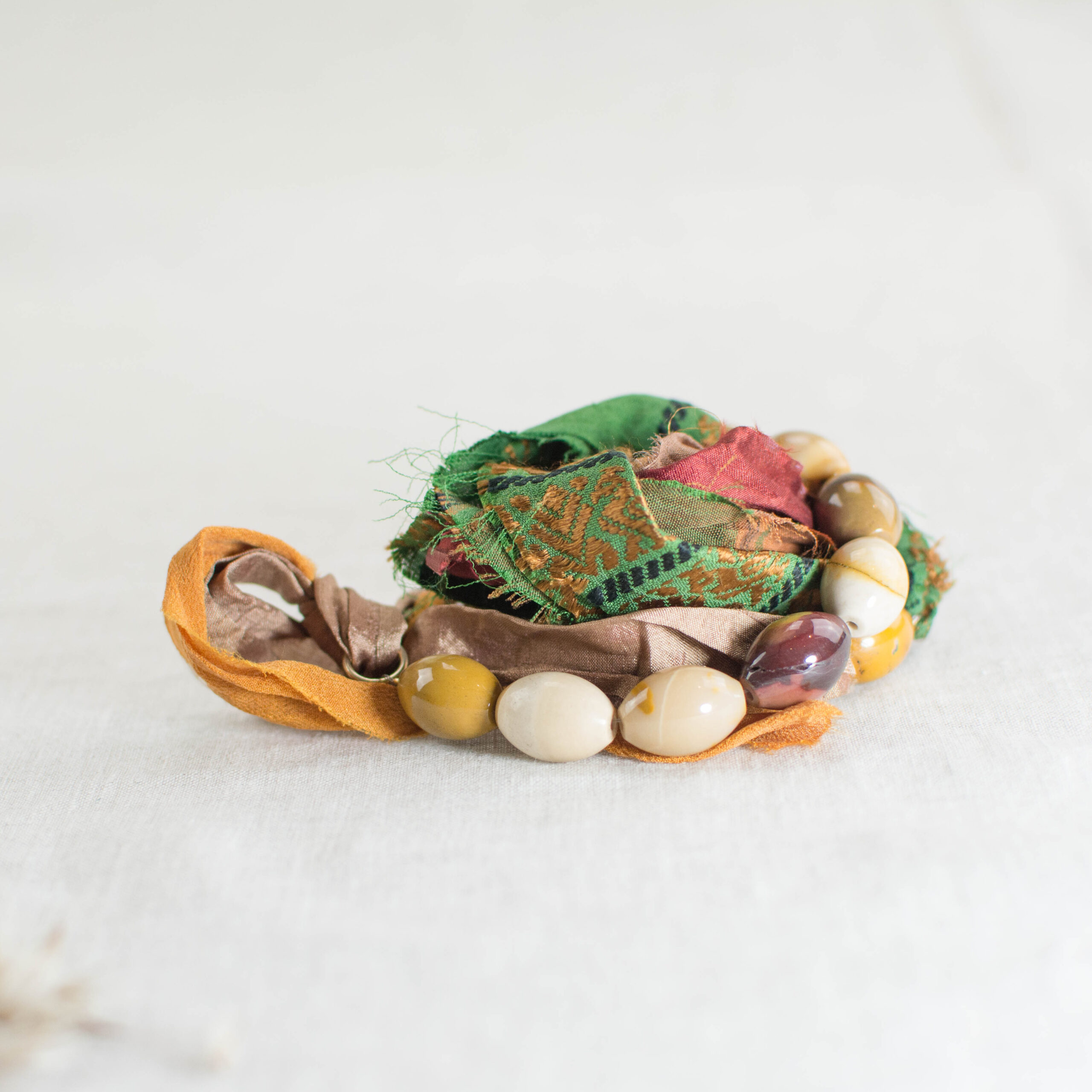 ▪️ Κολιέ με αχάτες και μεταξωτές κορδέλες.