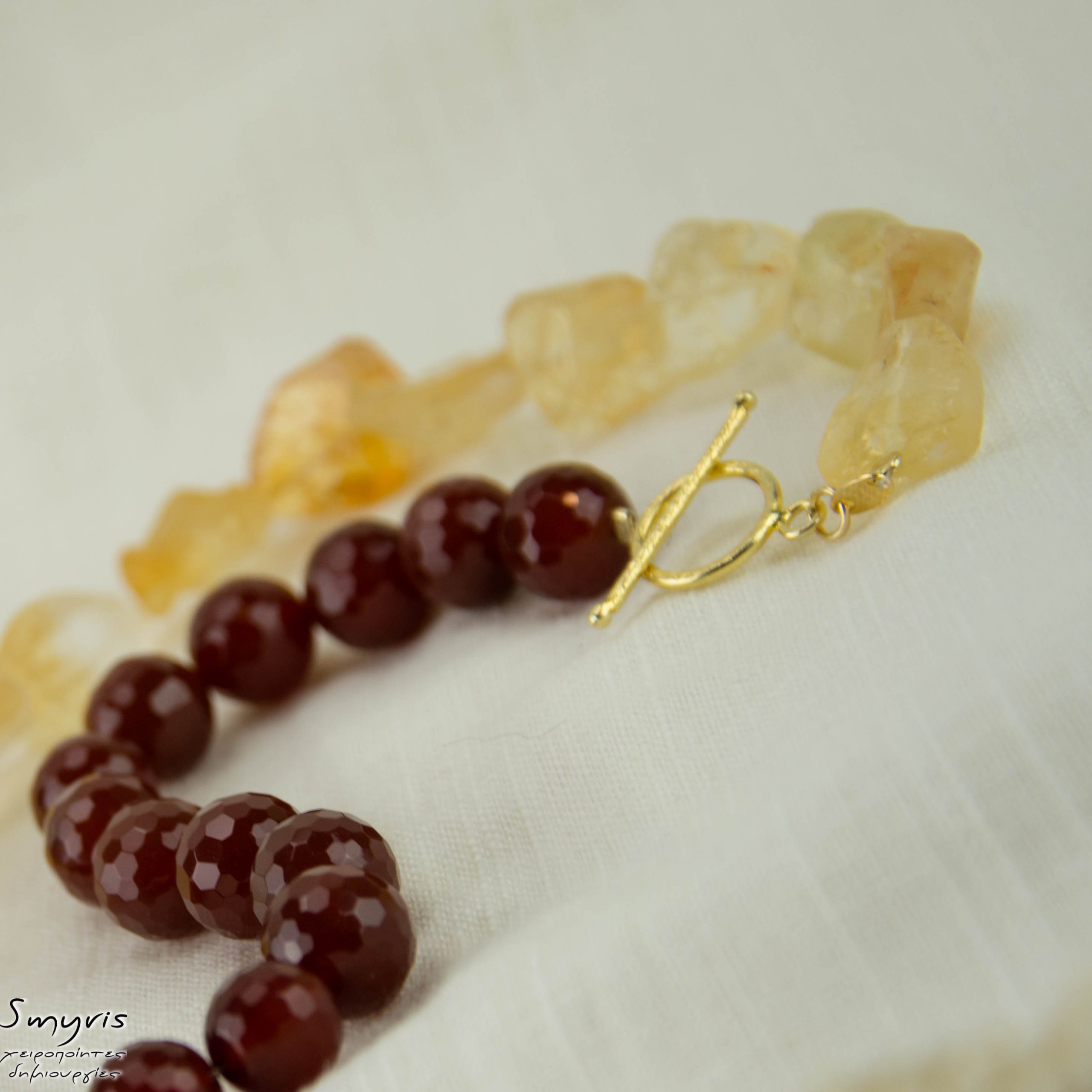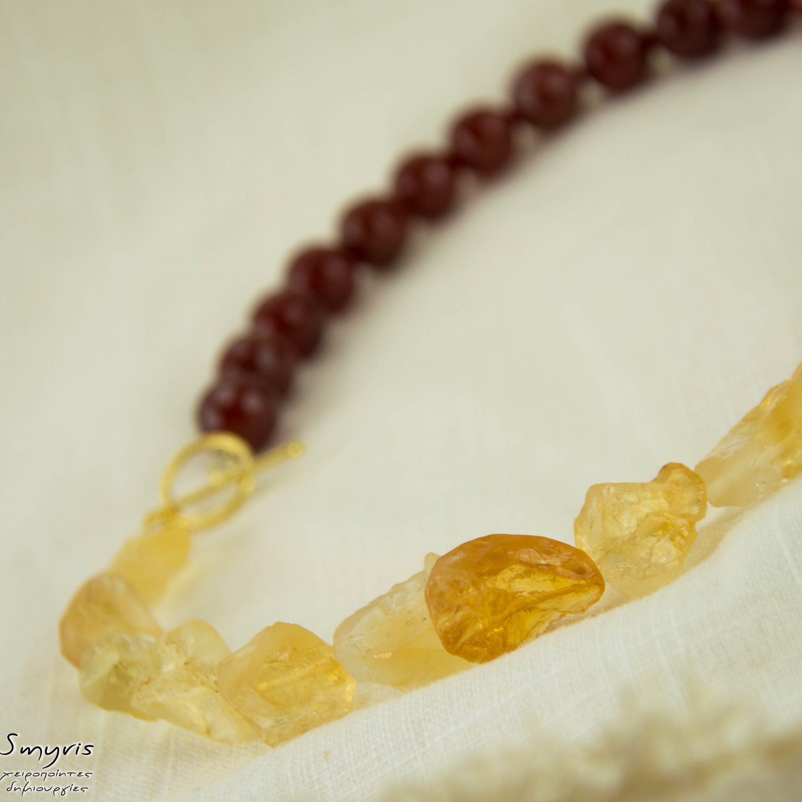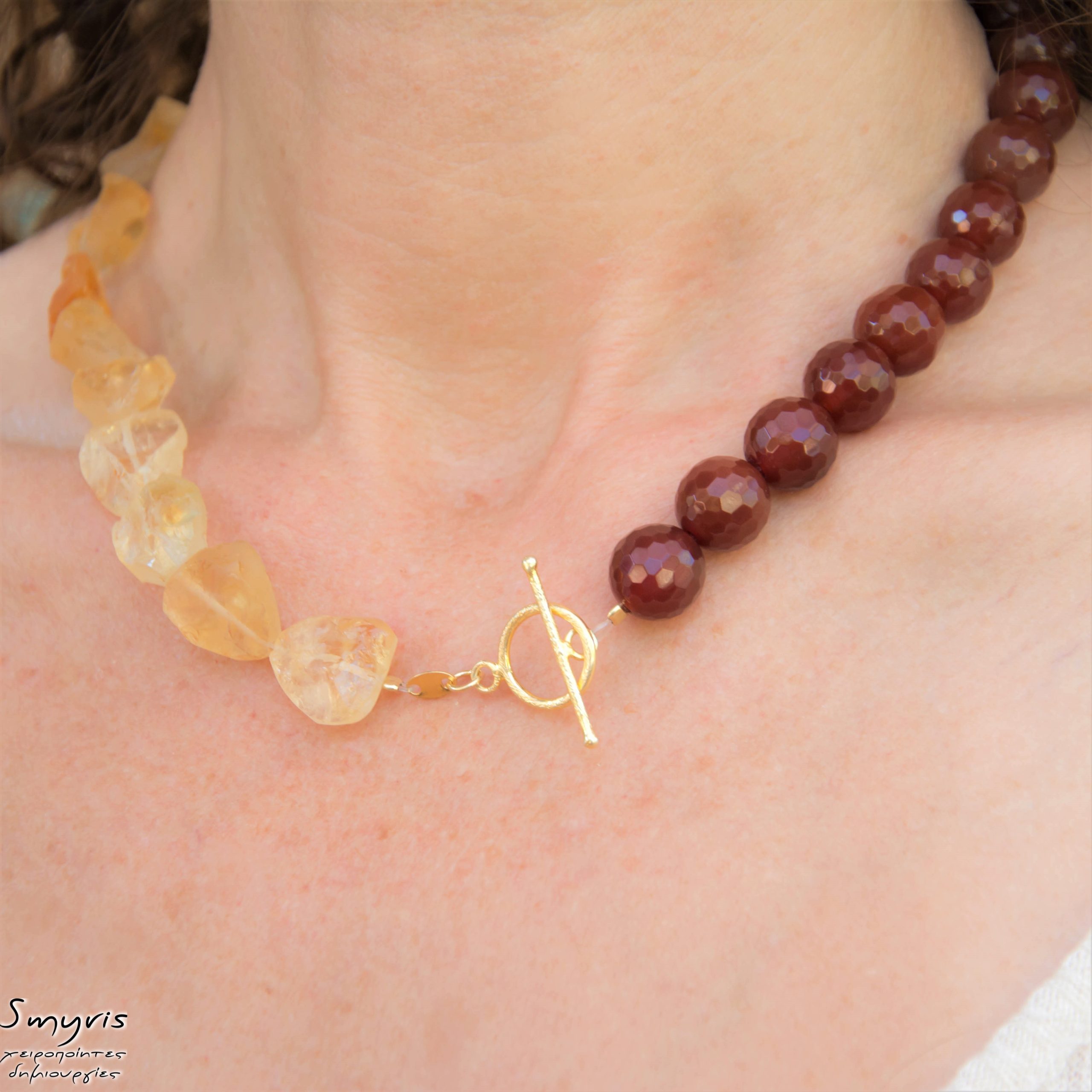 Κολιέ με κορνεόλη και ακατέργαστο κιτρίνη