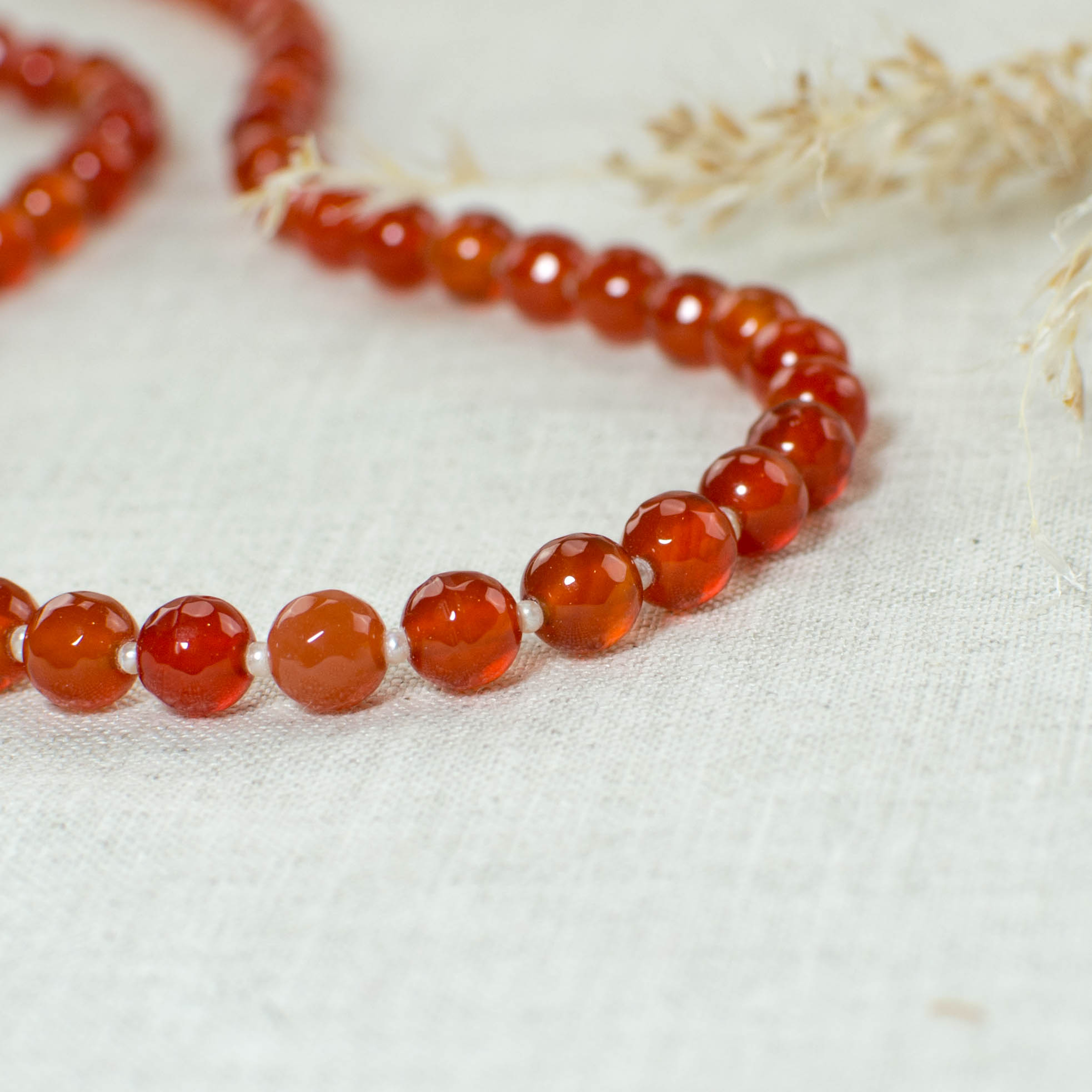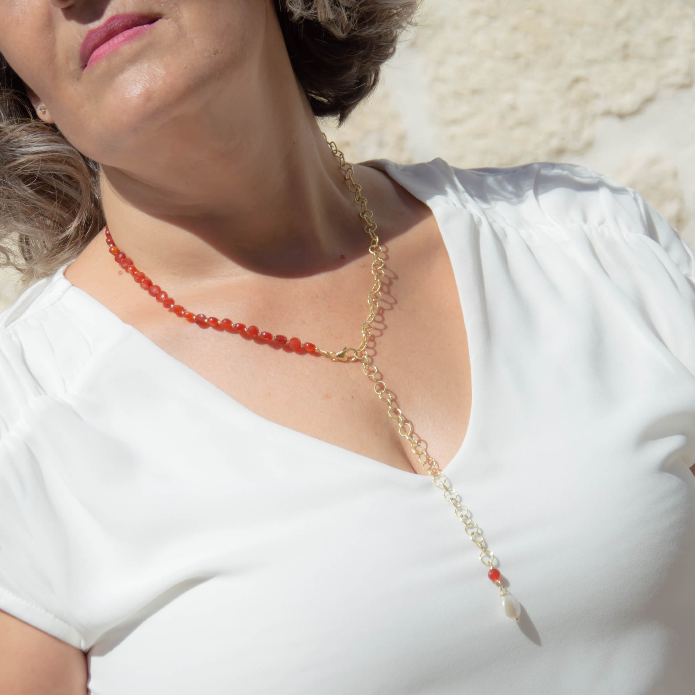 Κολιέ με κορνεόλη και μαργαριταράκια. Το νέο σου απαραίτητο κόσμημα για να είσαι γειωμένη και προστατευμένη όταν το φοράς!
