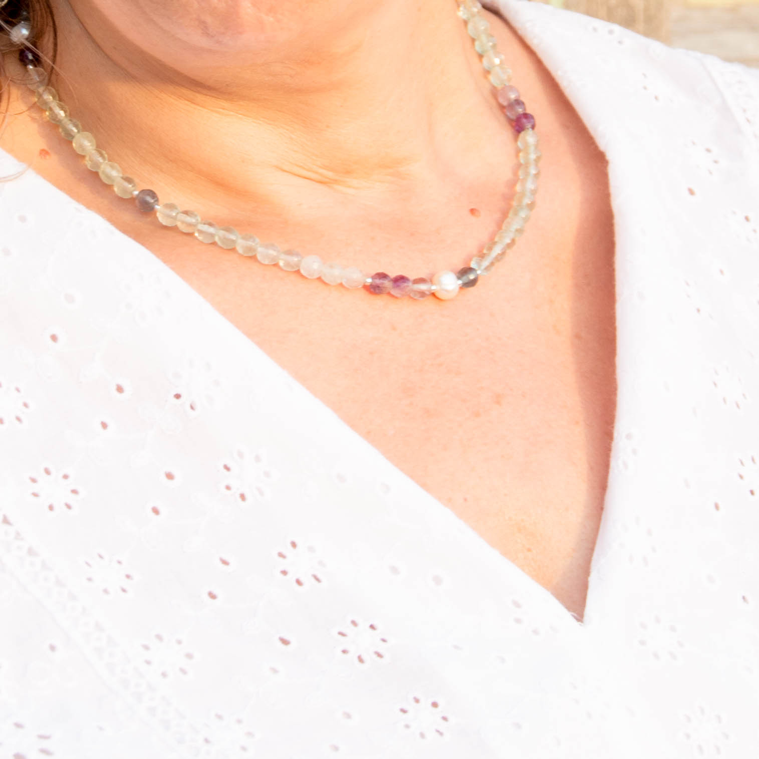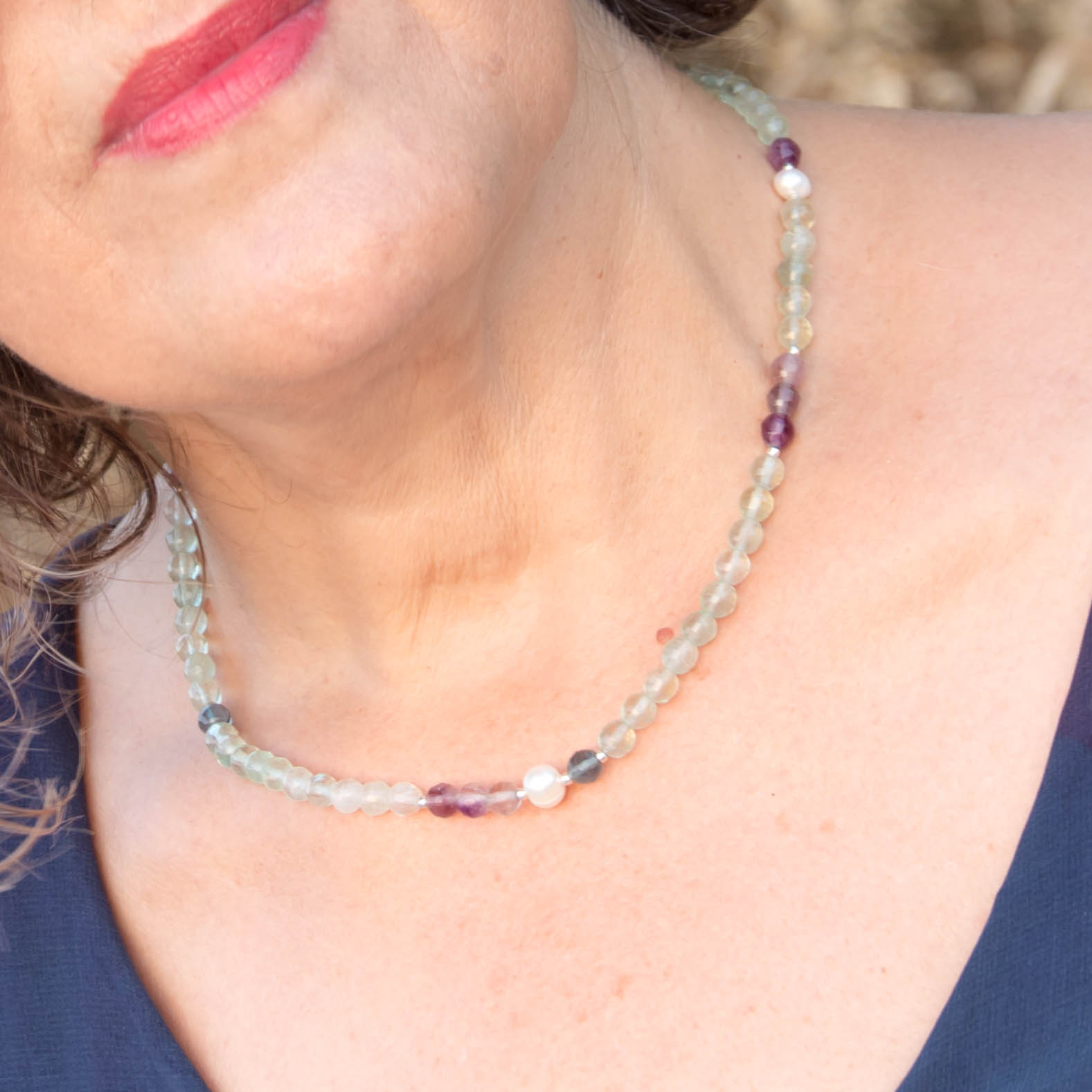 Κολιέ με φθορίτη και μαργαριτάρια. Ένα μείγμα από θεραπευτικές πέτρες που θα γίνει το νέο αγαπημένο σου κόσμημα!