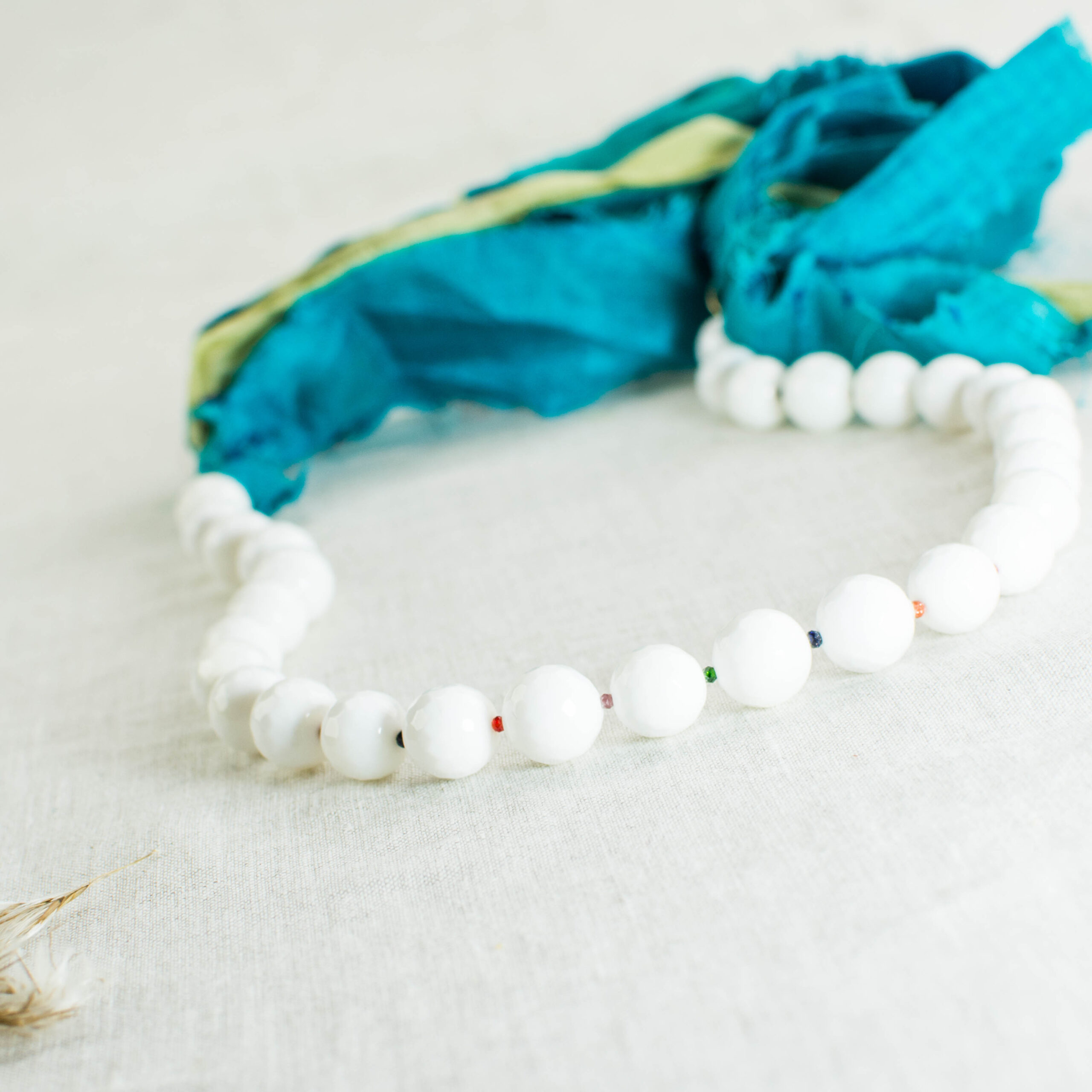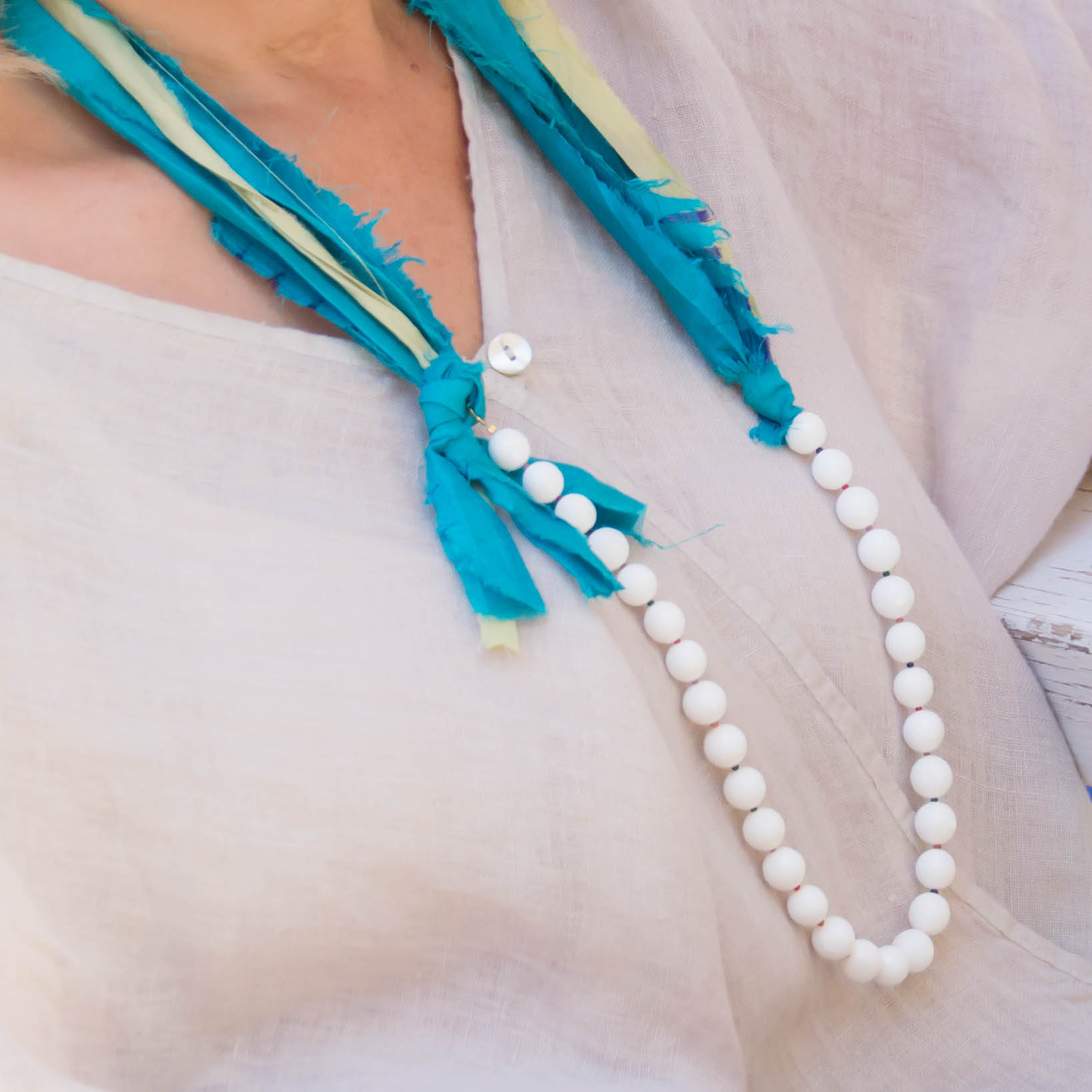 ▪️  Κολιέ με λευκό όνυχα και κορδέλες.