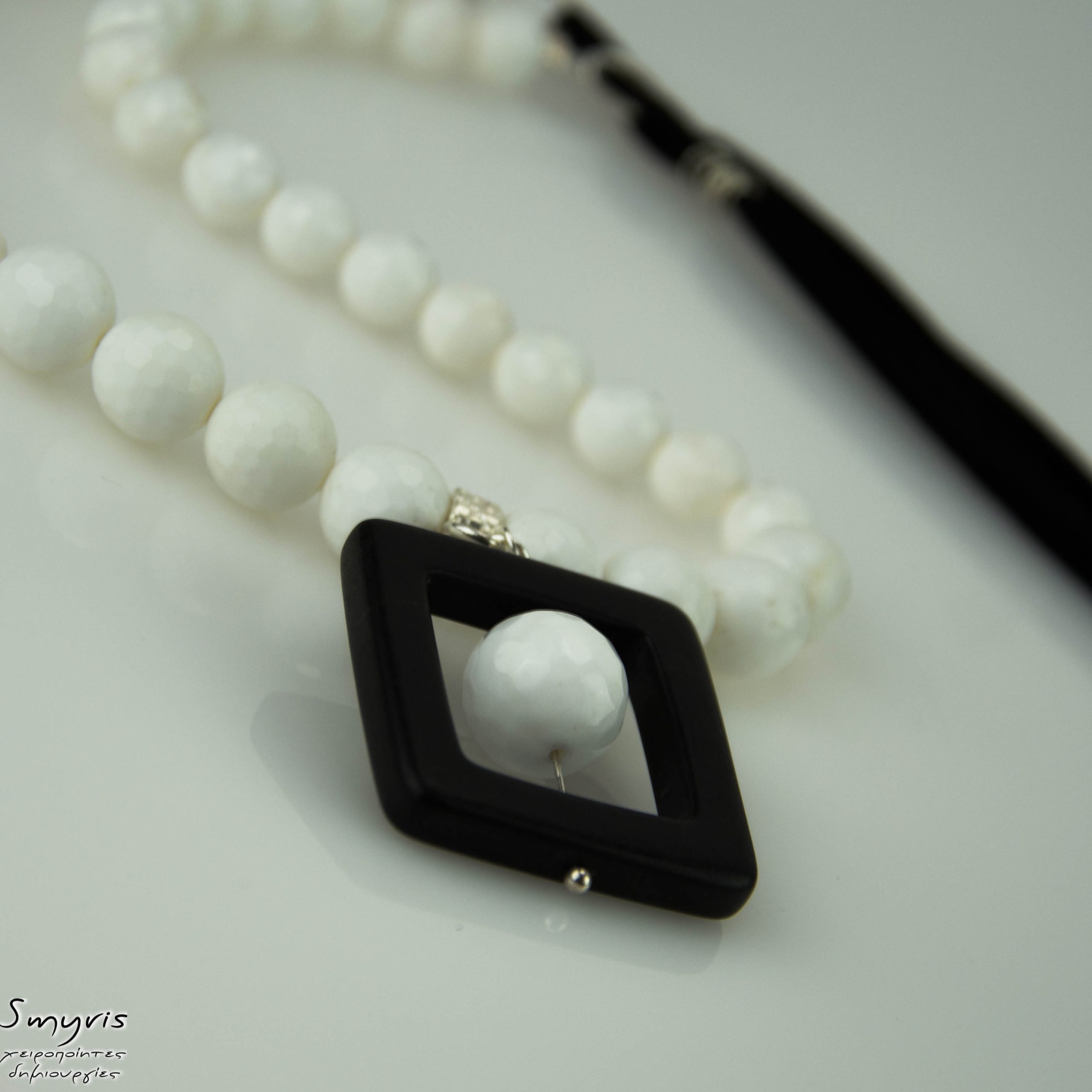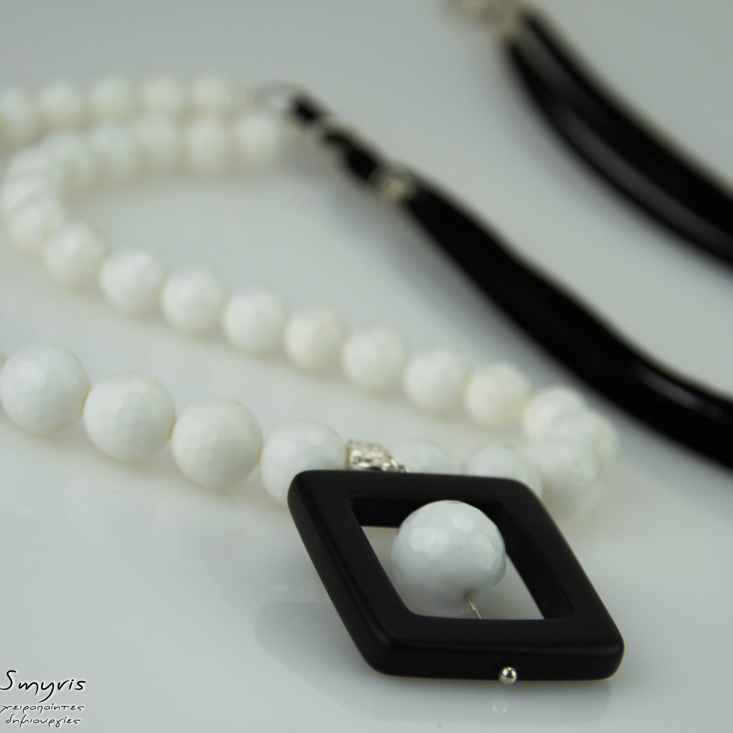 Κολιέ με λευκό όνυχα και σουέτ κορδόνι