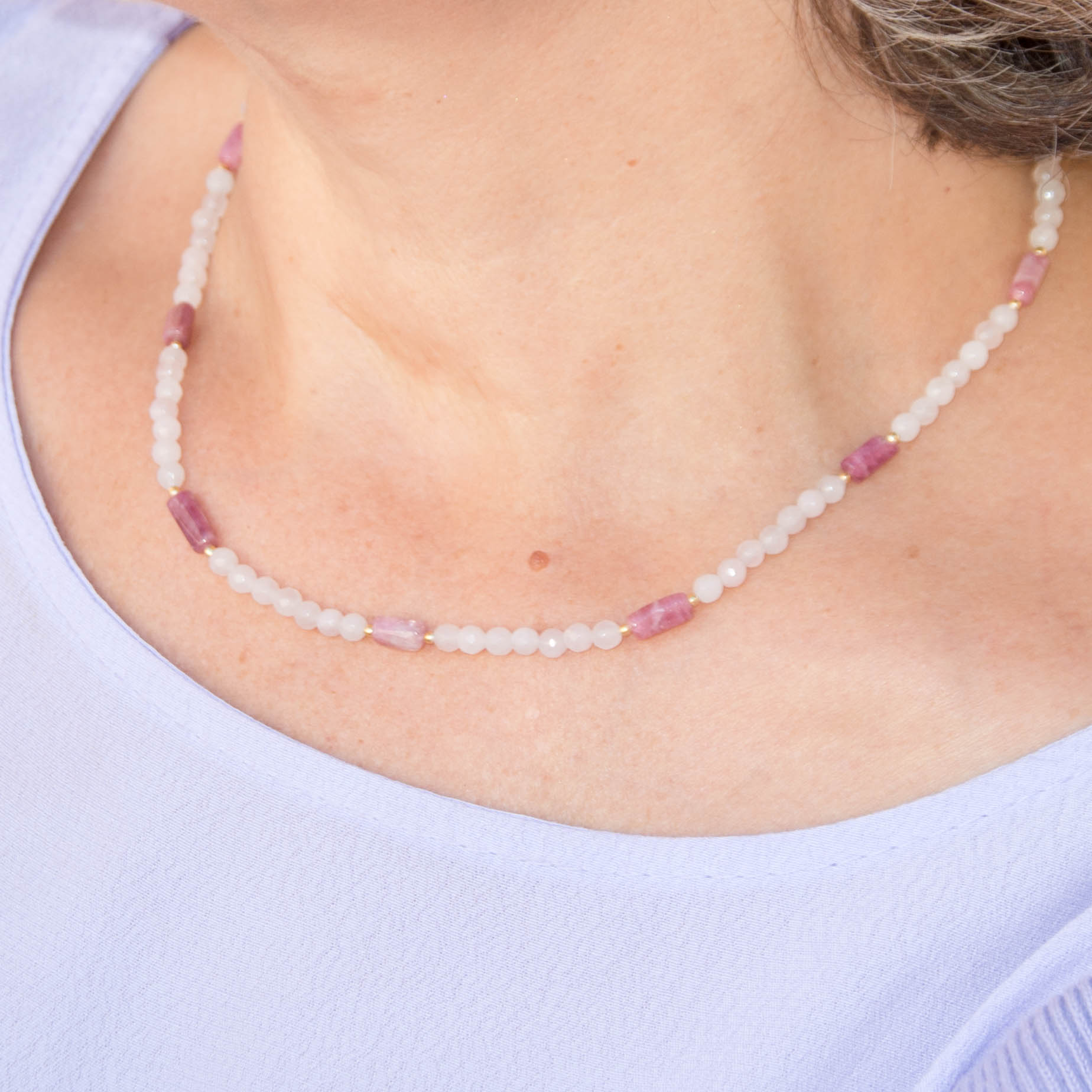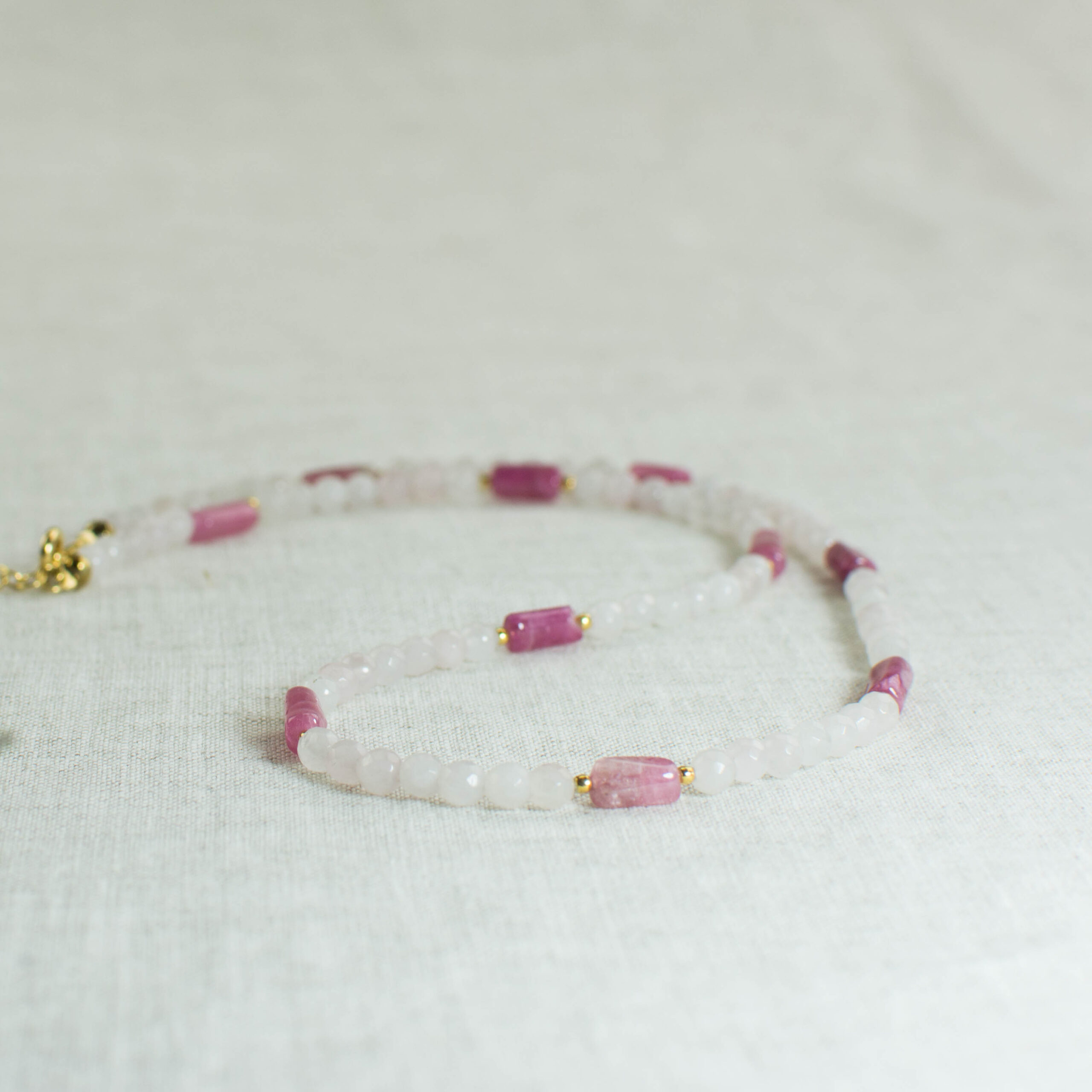 Κολιέ με ροζ χαλαζία και ροζ τουρμαλίνη. Ένα υπέροχο κολιέ γεμάτο αγάπη για τον εαυτό σου!!!