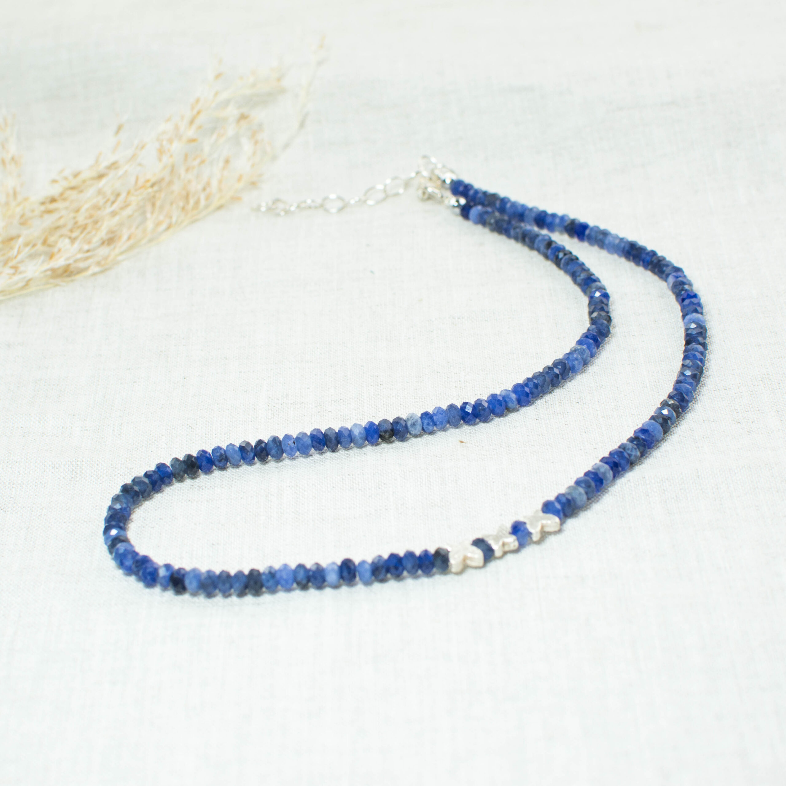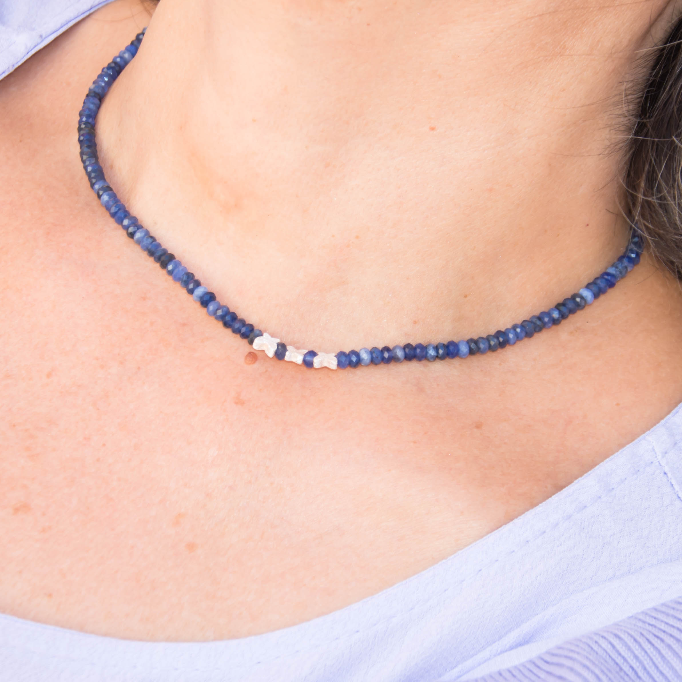 Κολιέ με σοδαλίτη και ασημένιες πεταλούδες