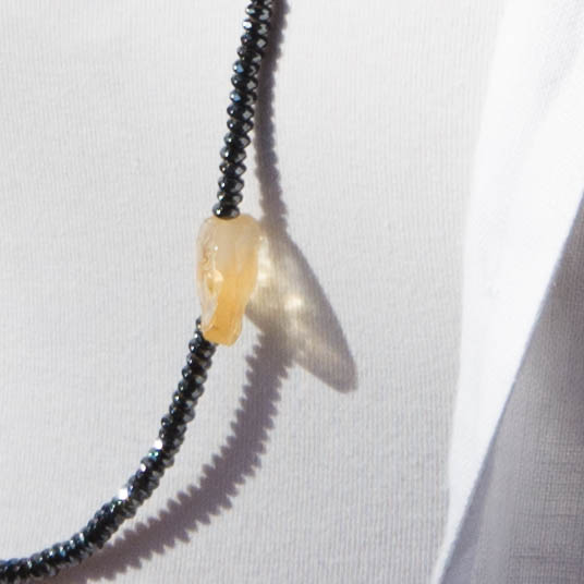 Μακρύ κολιέ με κιτρίνη και αιματίτη