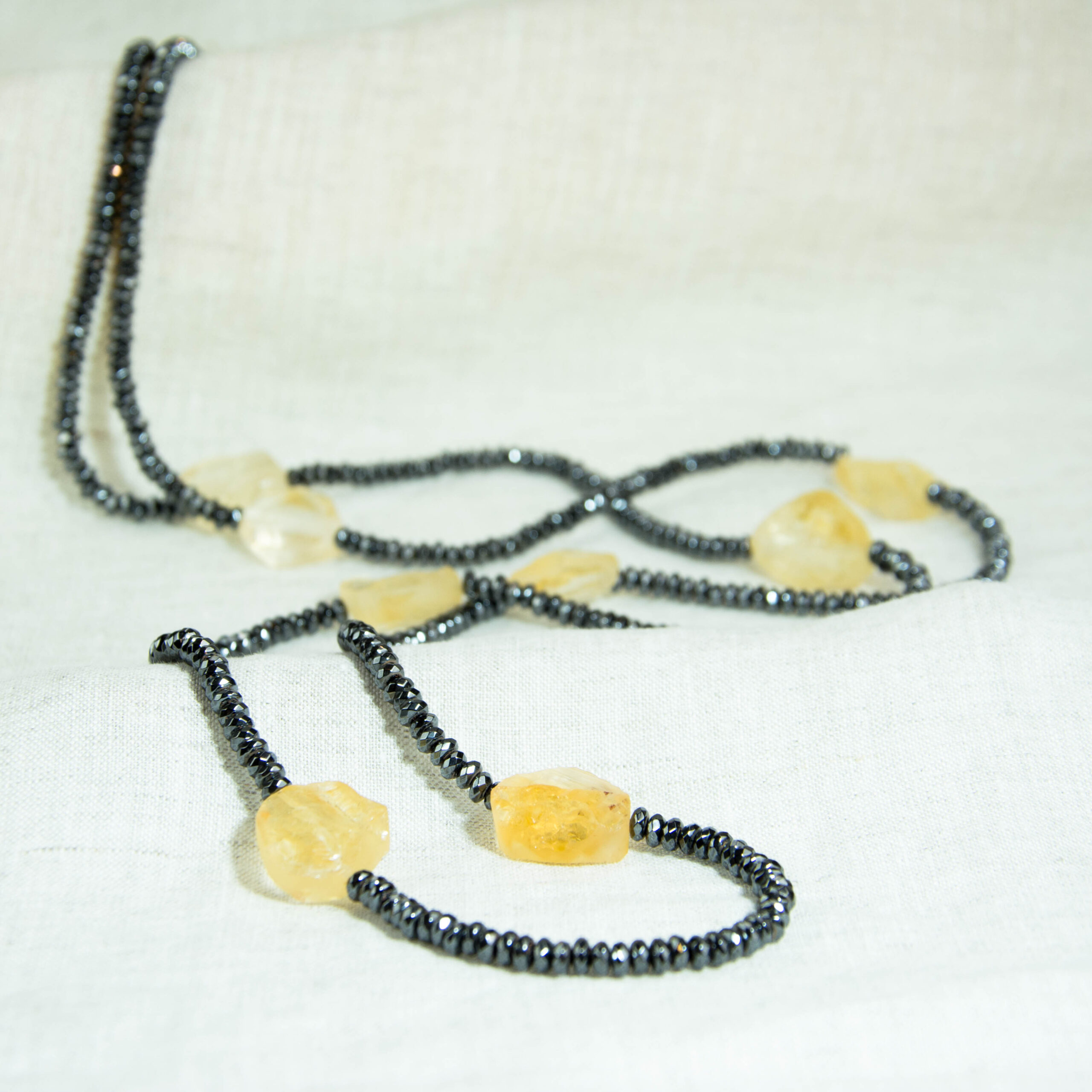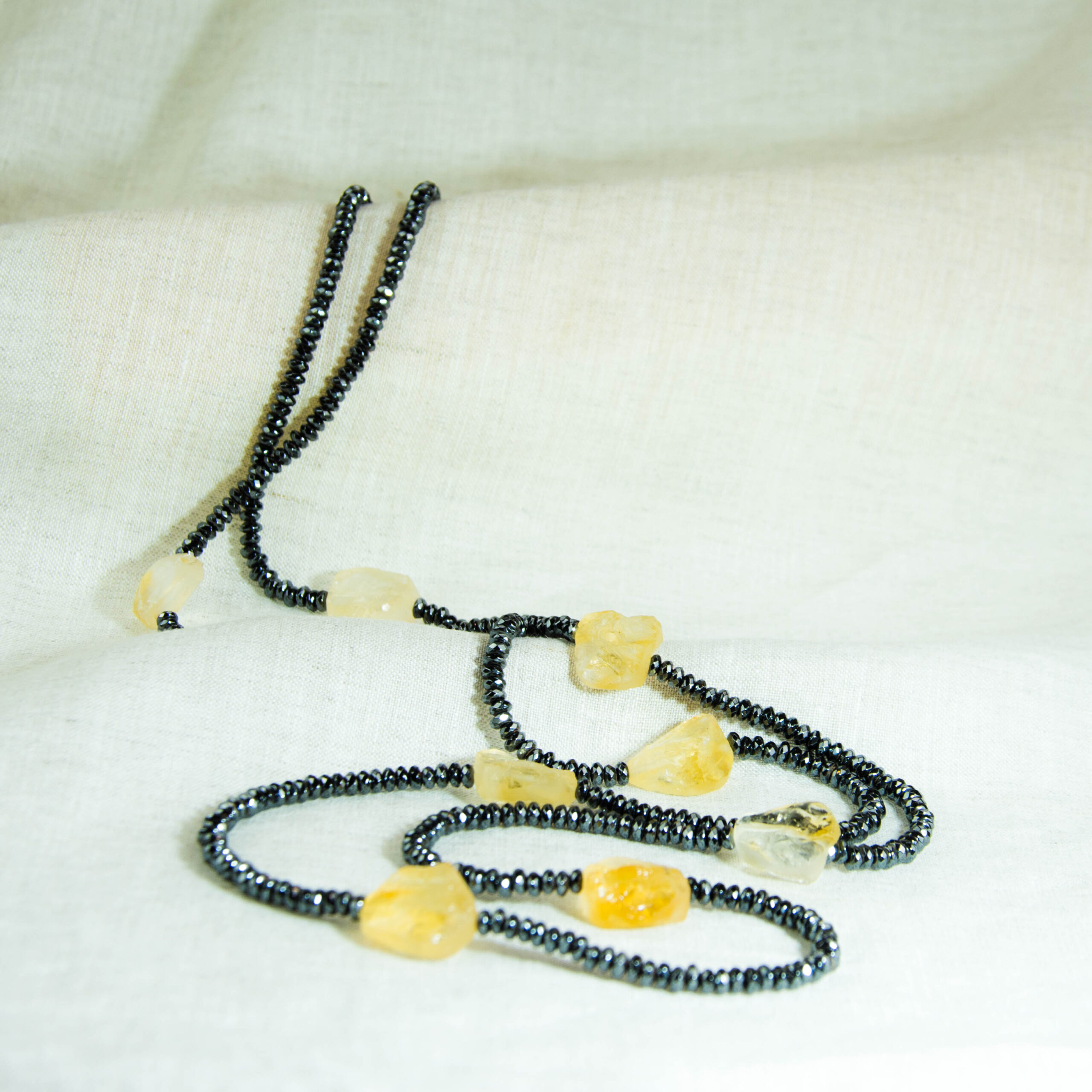 Μακρύ κολιέ με κιτρίνη και αιματίτη. Ένα κόσμημα με τις ακτίνες του ήλιου για να σου δίνουν ζεστασιά και ενέργεια όταν το φοράς!!