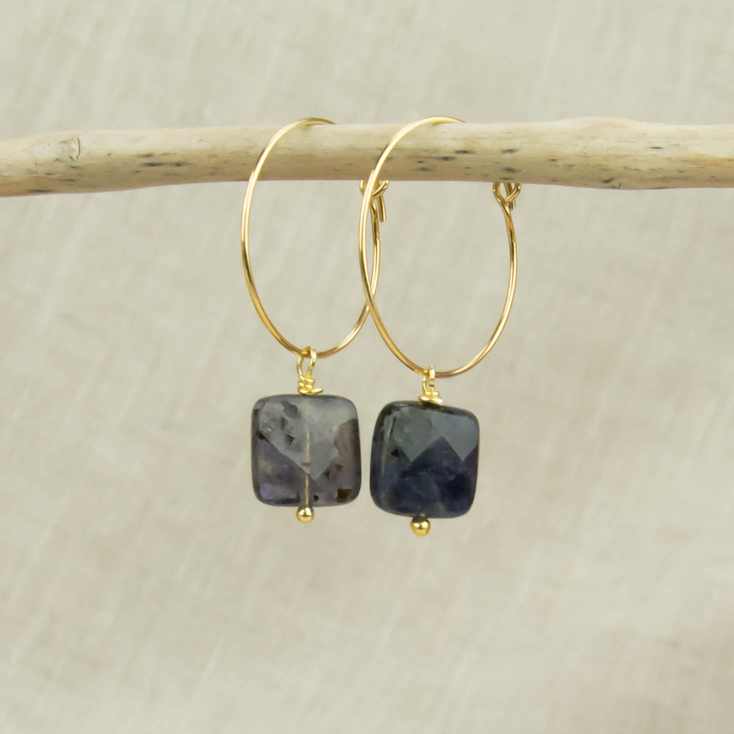 ▪️ Σκουλαρίκια κρίκοι με κρύσταλλο Ιολίτη σε ασήμι 925 επιχρυσωμένο.