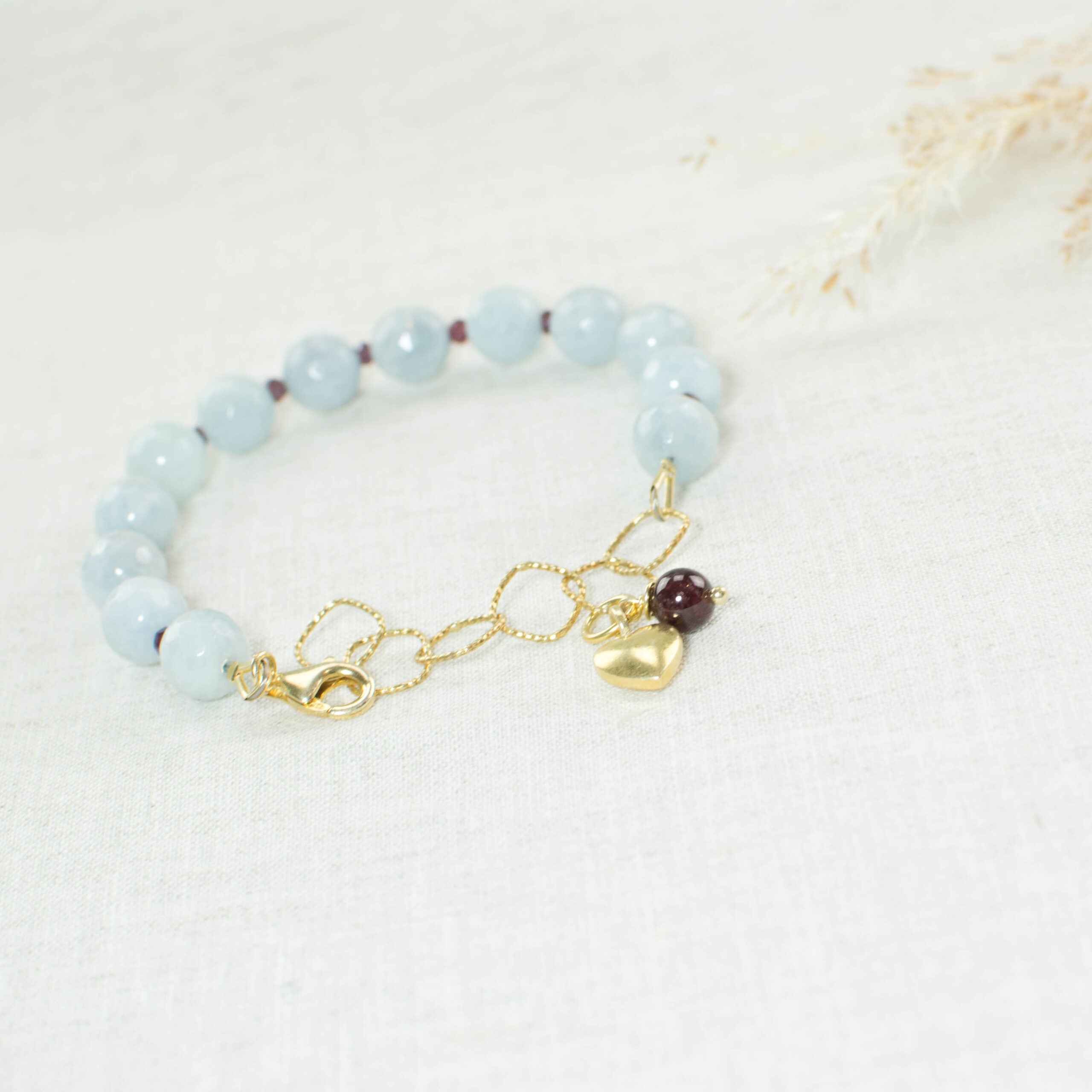 Βραχιόλι με άκουα μαρίνα και γρανάτη. Ένα εξαιρετικό κόσμημα για να παραμένεις ήρεμη ότι κι αν συμβαίνει γύρω σου!!!