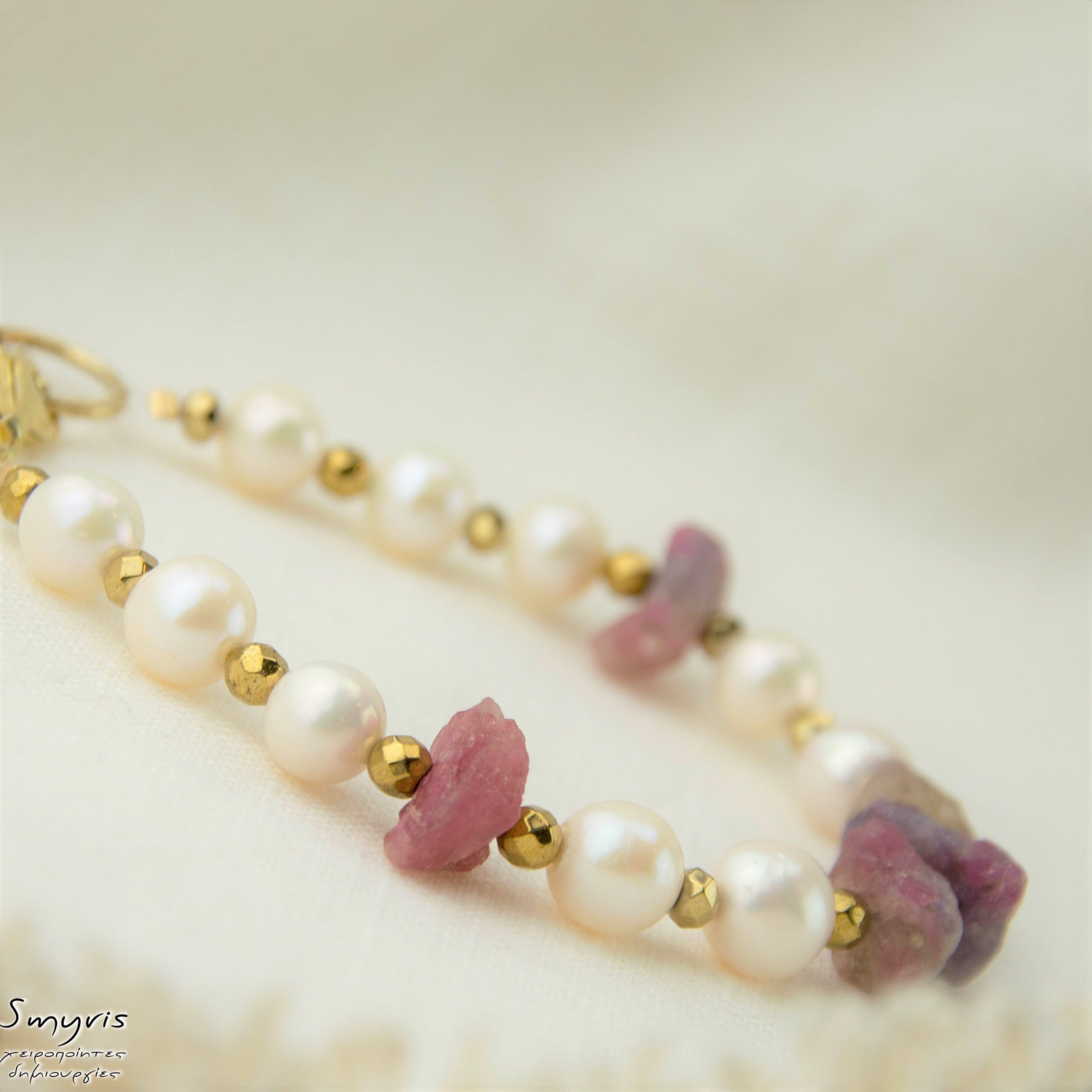 Βραχιόλι με μαργαριτάρια και ακατέργαστη ροζ τουρμαλίνη