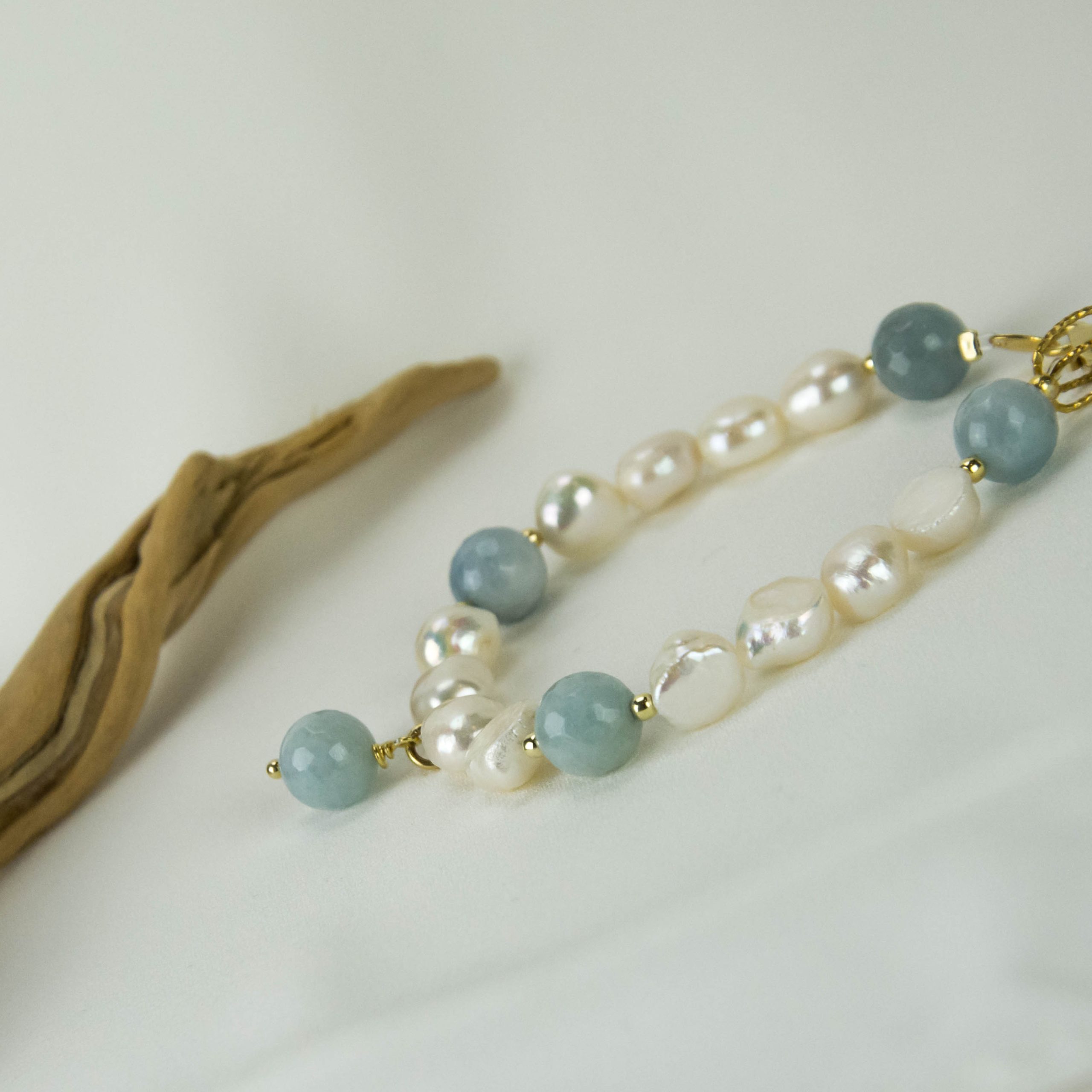 Εντυπωσιακό βραχιόλι με μαργαριτάρια μπαρόκ και άκουα μαρίνα και θα συμπληρώσεις το σύνολο σου με ένα υπέροχο κόσμημα.
