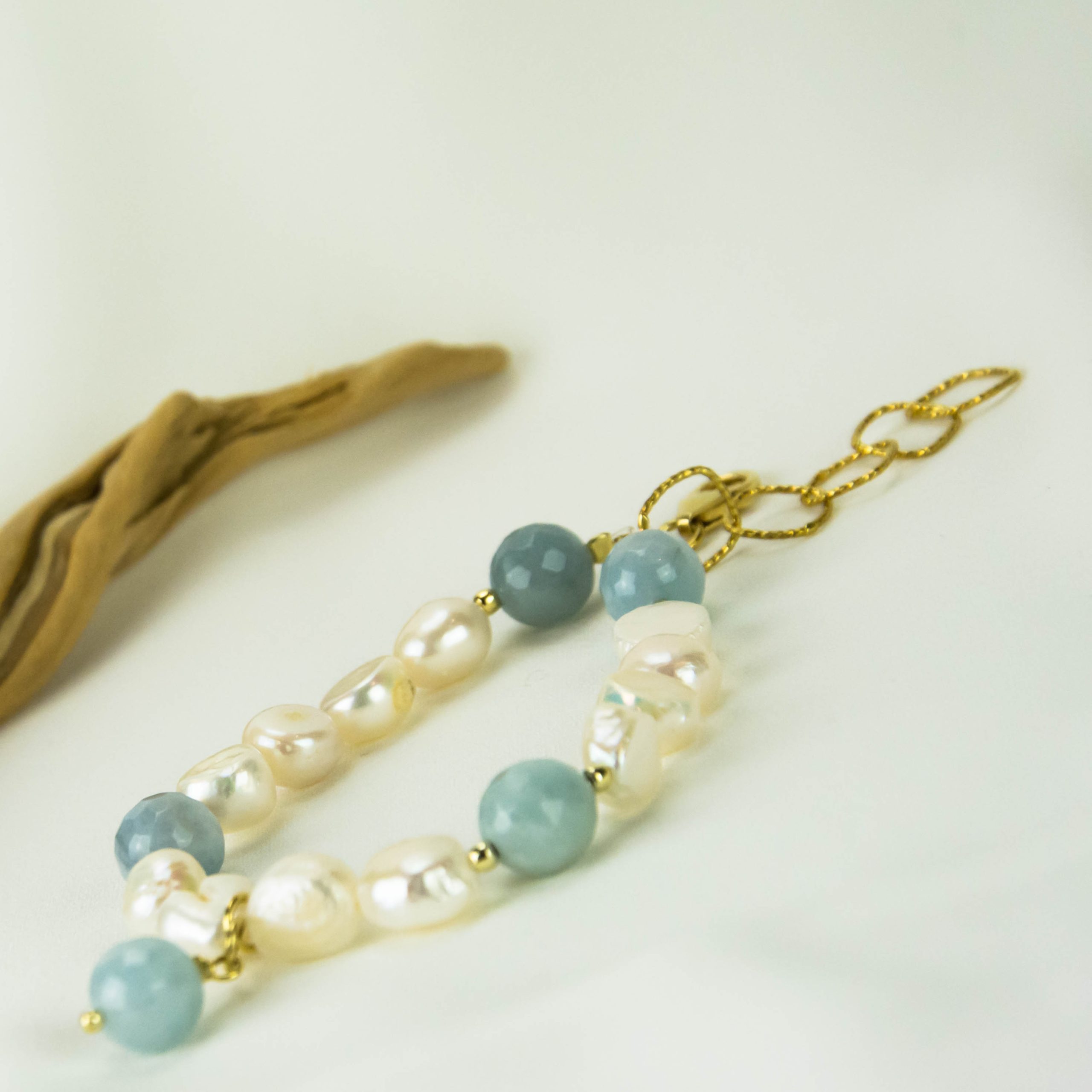 ◾ Βραχιόλι με μαργαριτάρια μπαρόκ και άκουα μαρίνα με ασημένια 925 επιχρυσωμένα εξαρτήματα.