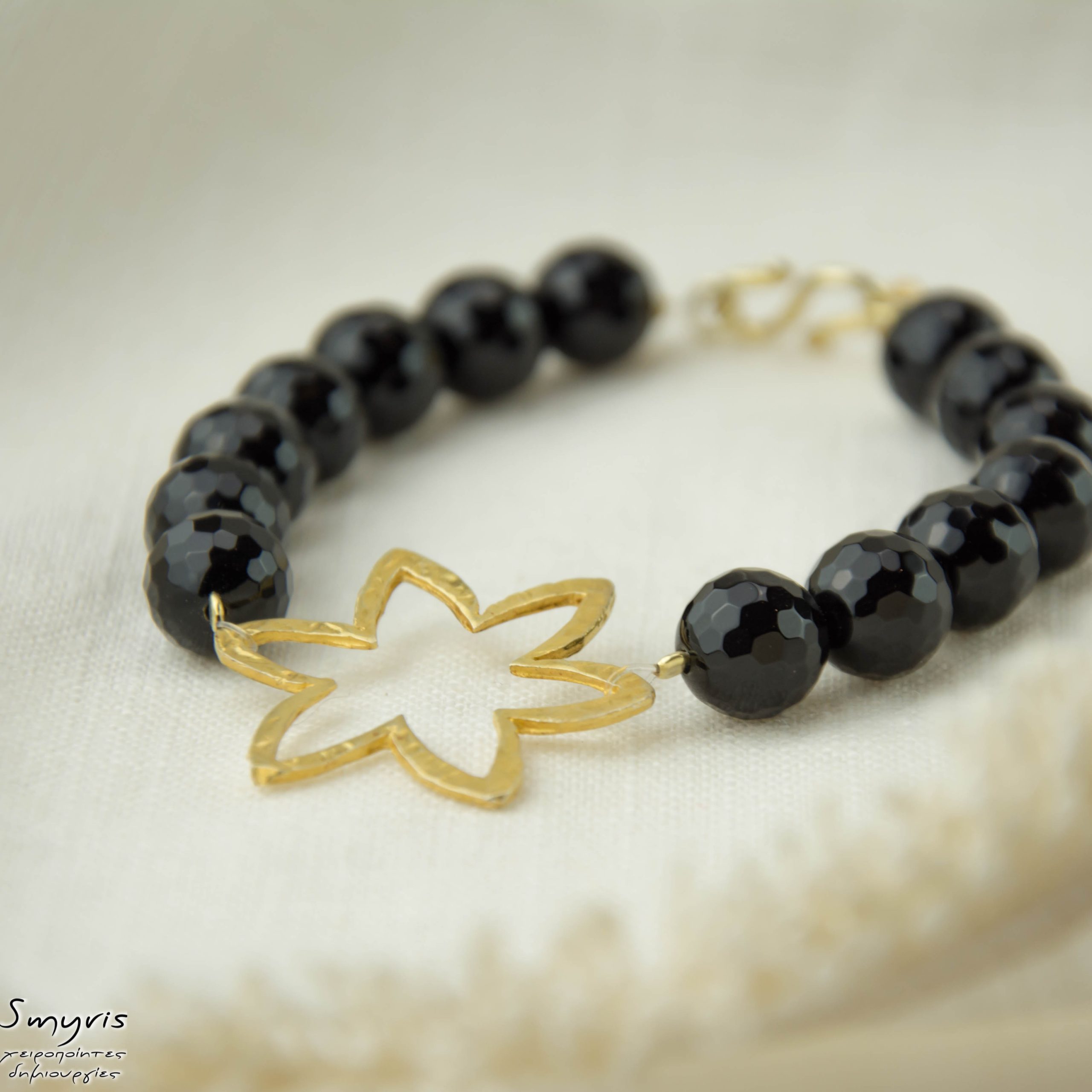 Βραχιόλι με μαύρο όνυχα και ασημένιο 925 επιχρυσωμένο στοιχείο. Μήκος 20εκ.